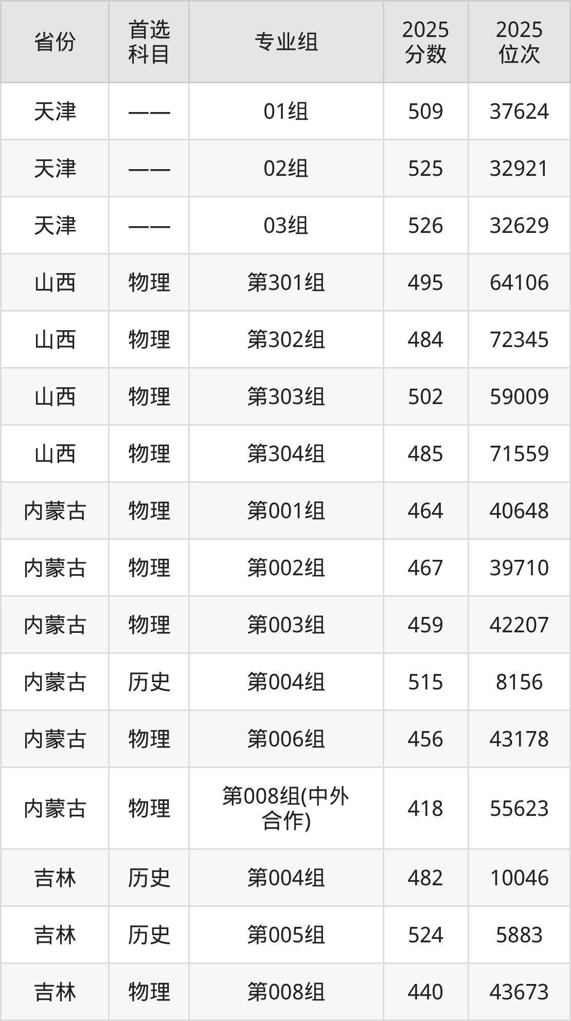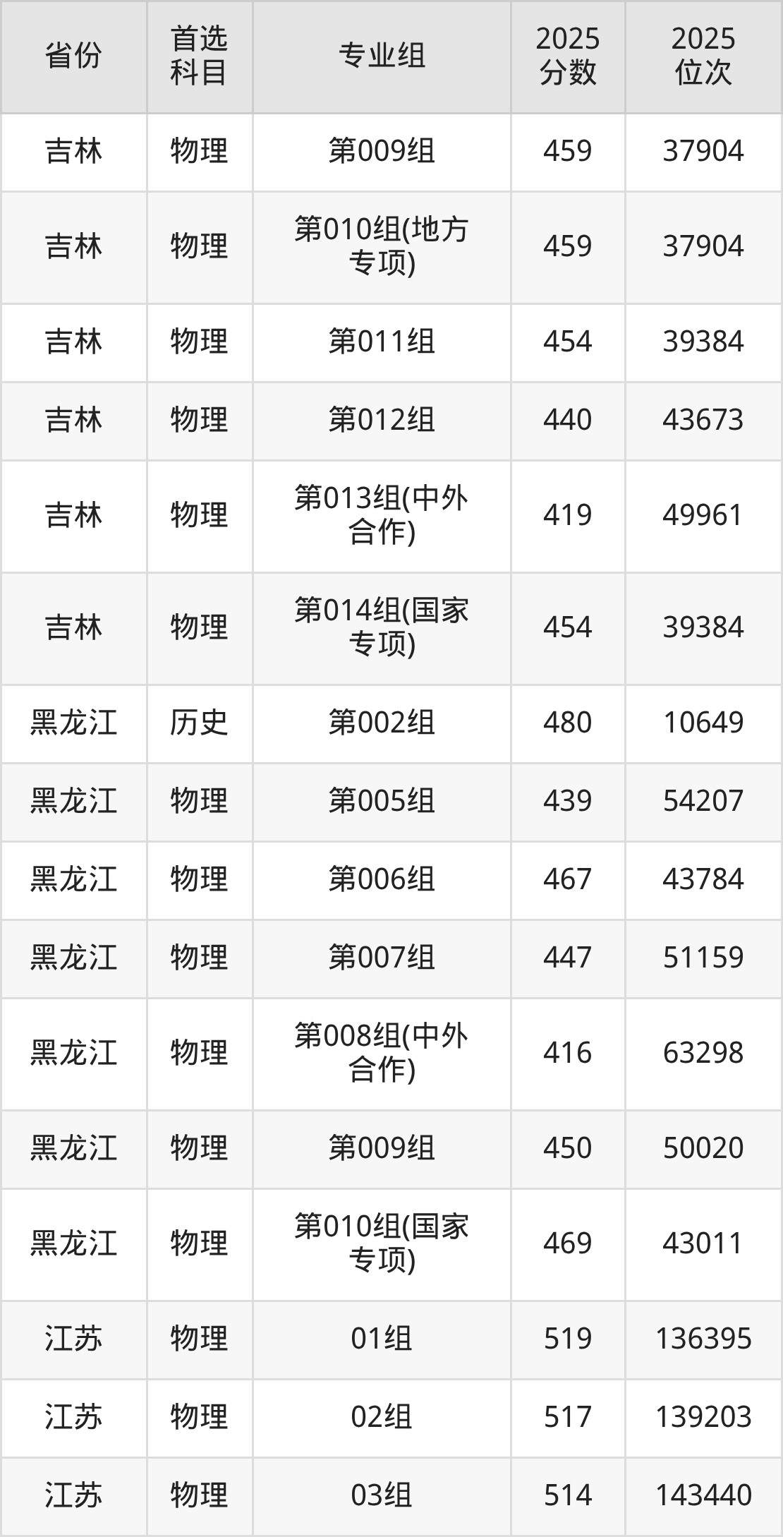 因为大部分地区目前只公布了院校(专业组)分数线,为了方便2026年考生参考,本文就整理出吉林农业大学在全国各省不同科类的最低分: