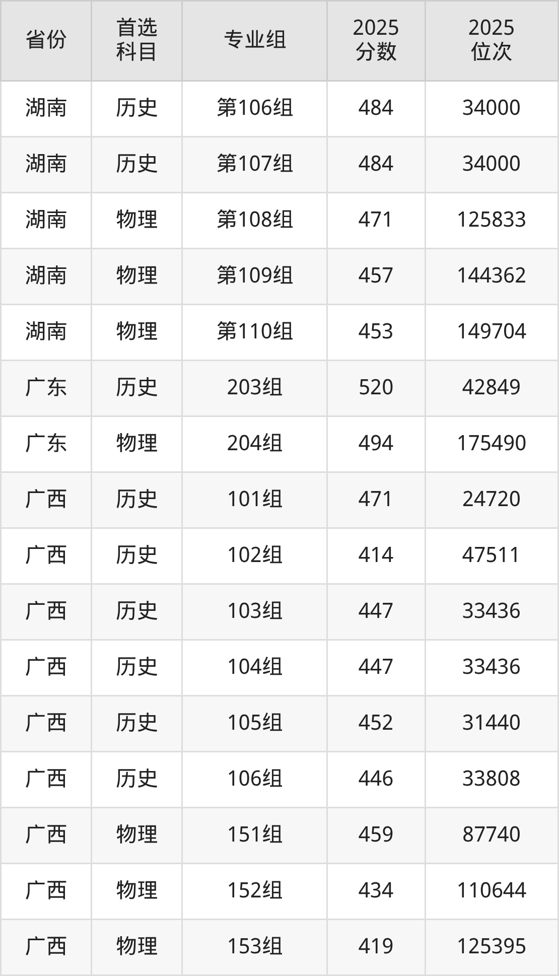 15.湖南:历史类484分、34000位,物理类453分、149704位