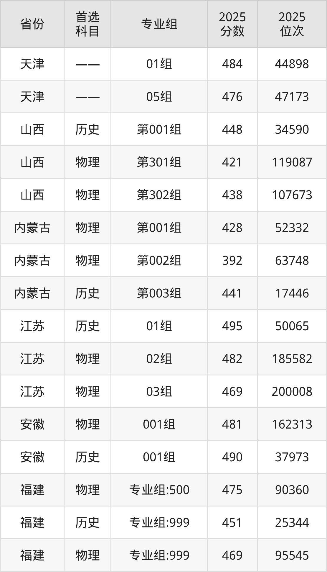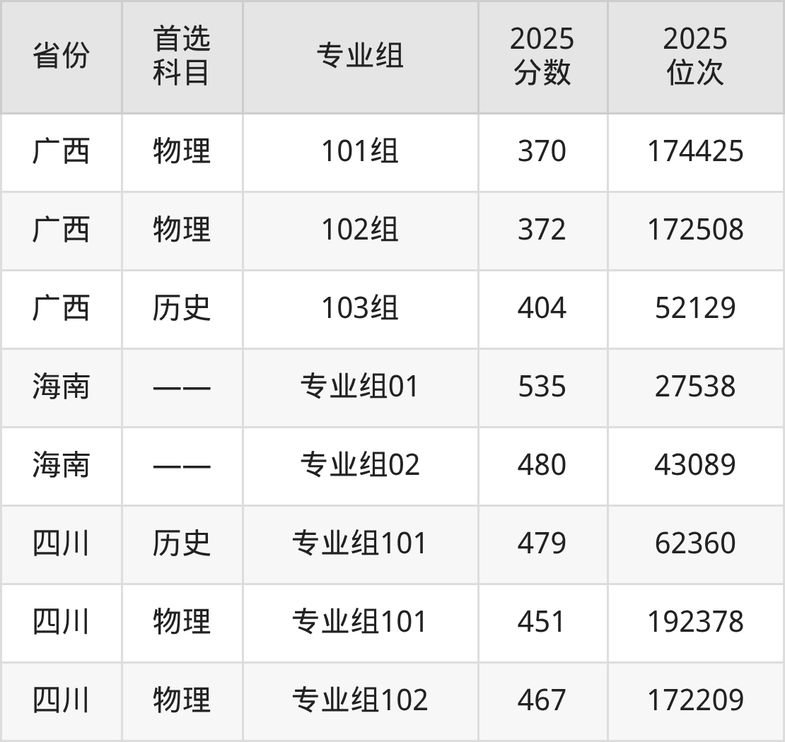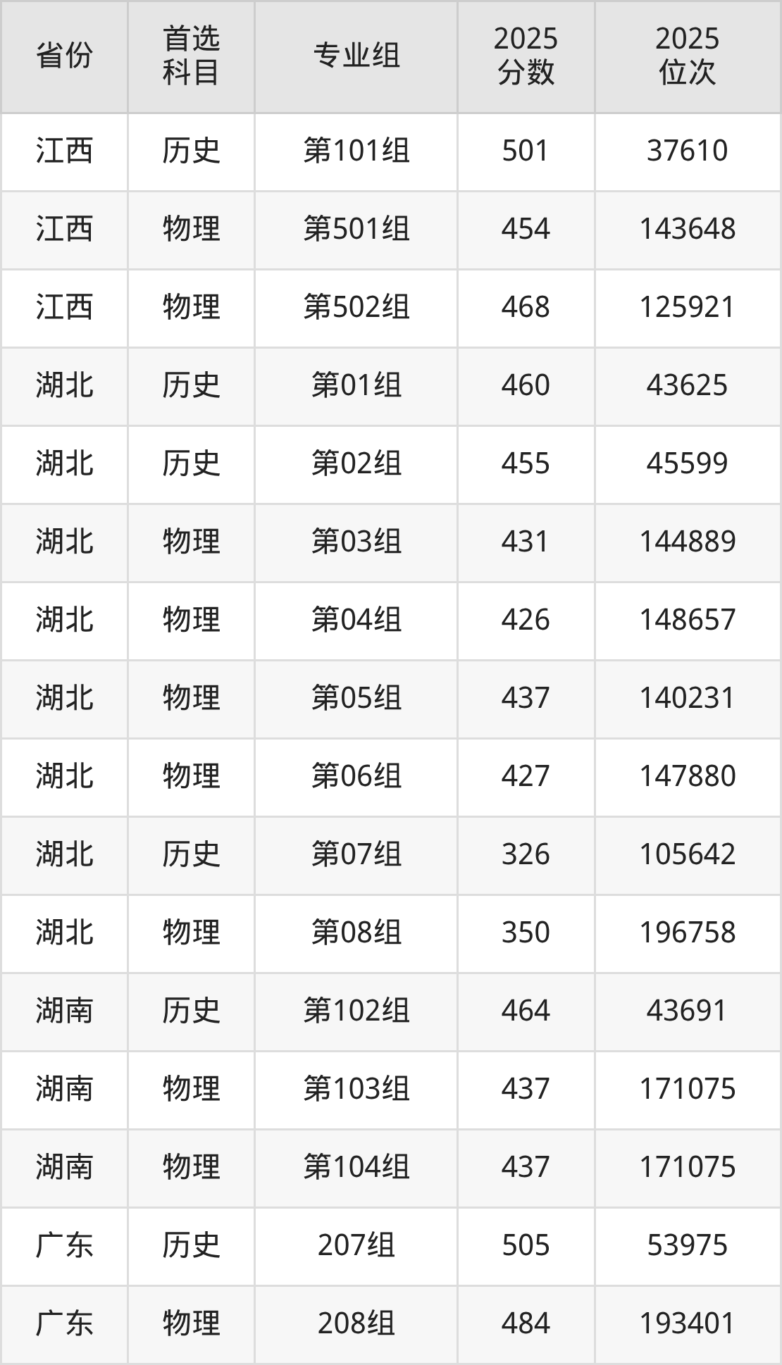 因为大部分地区目前只公布了院校(专业组)分数线,为了方便2026年考生参考,本文就整理出武汉晴川学院在全国各省不同科类的最低分: