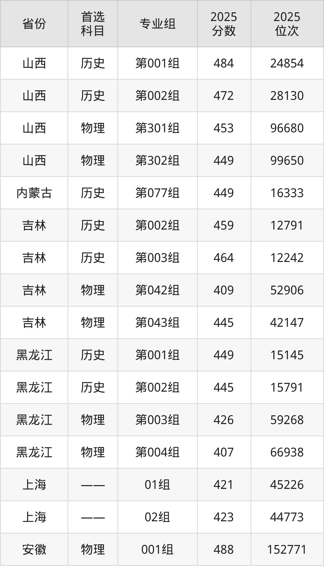 因为大部分地区目前只公布了院校(专业组)分数线,为了方便2026年考生参考,本文就整理出吉林艺术学院在全国各省不同科类的最低分: