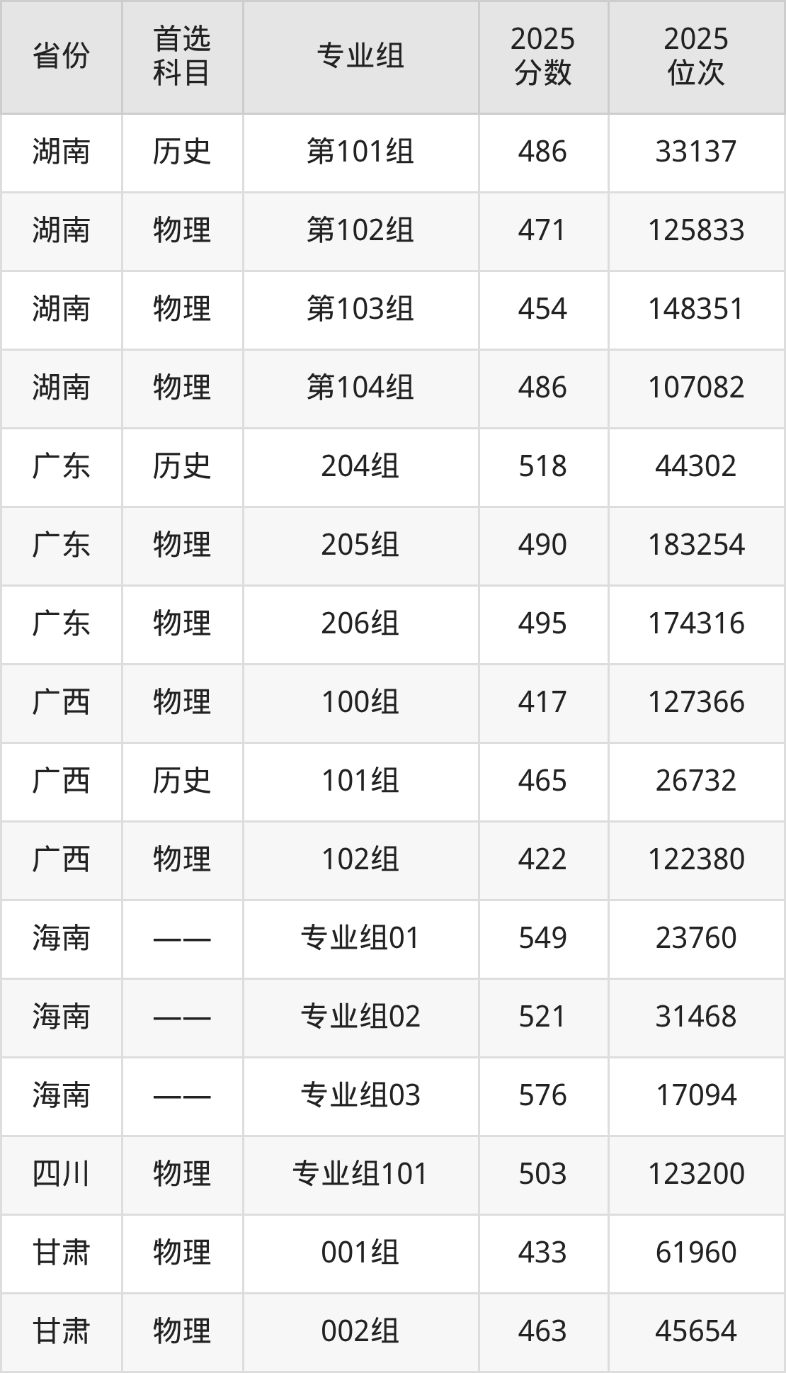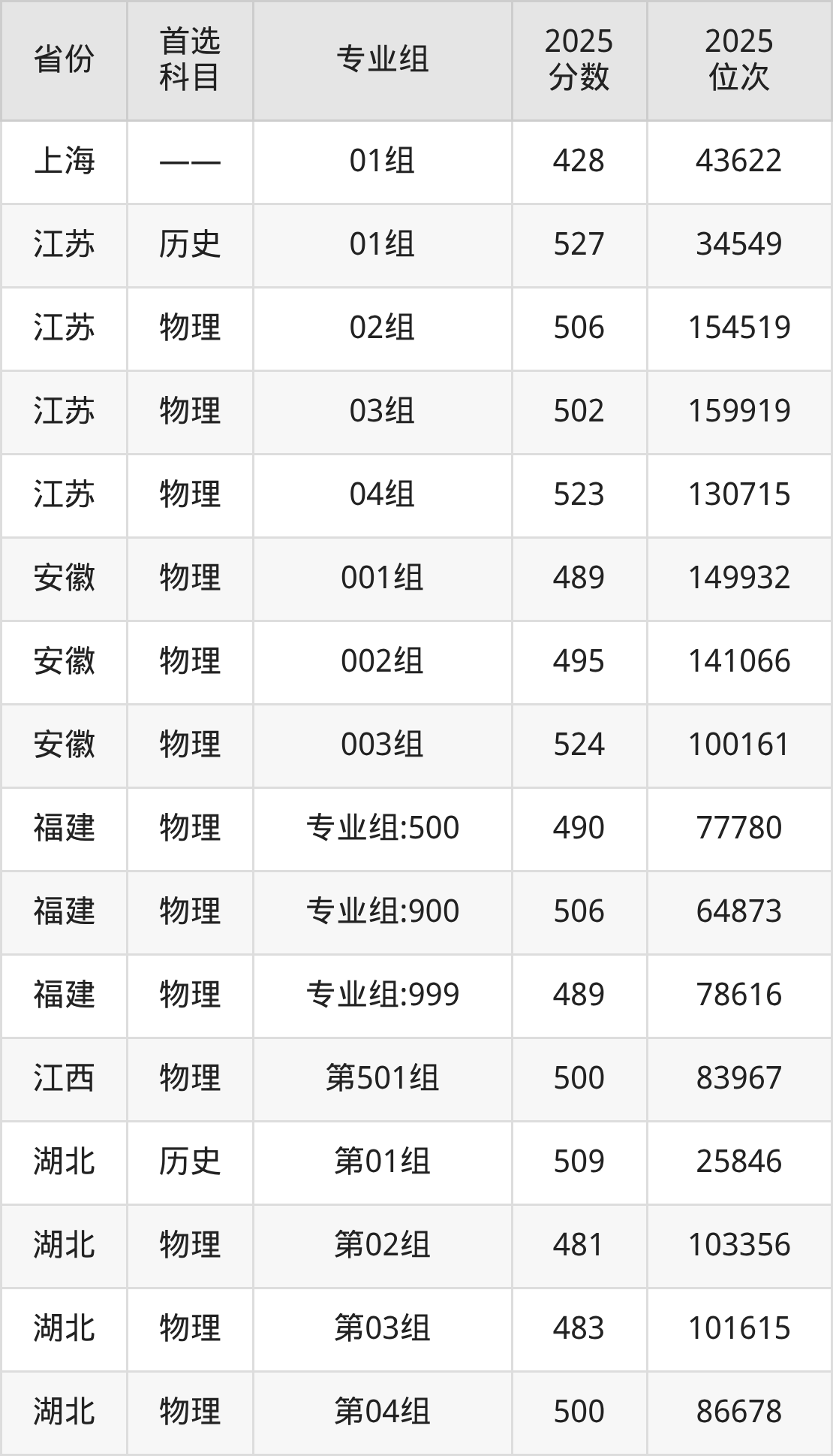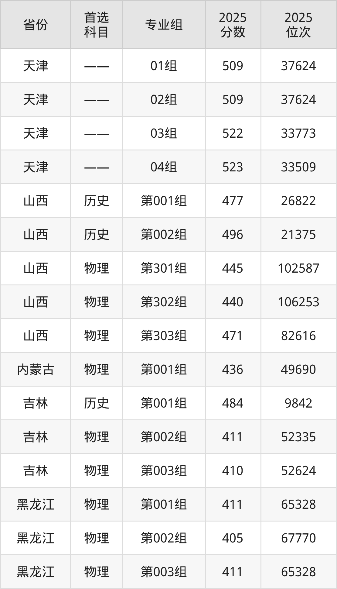 因为大部分地区目前只公布了院校(专业组)分数线,为了方便2026年考生参考,本文就整理出山西工程技术学院在全国各省不同科类的最低分: