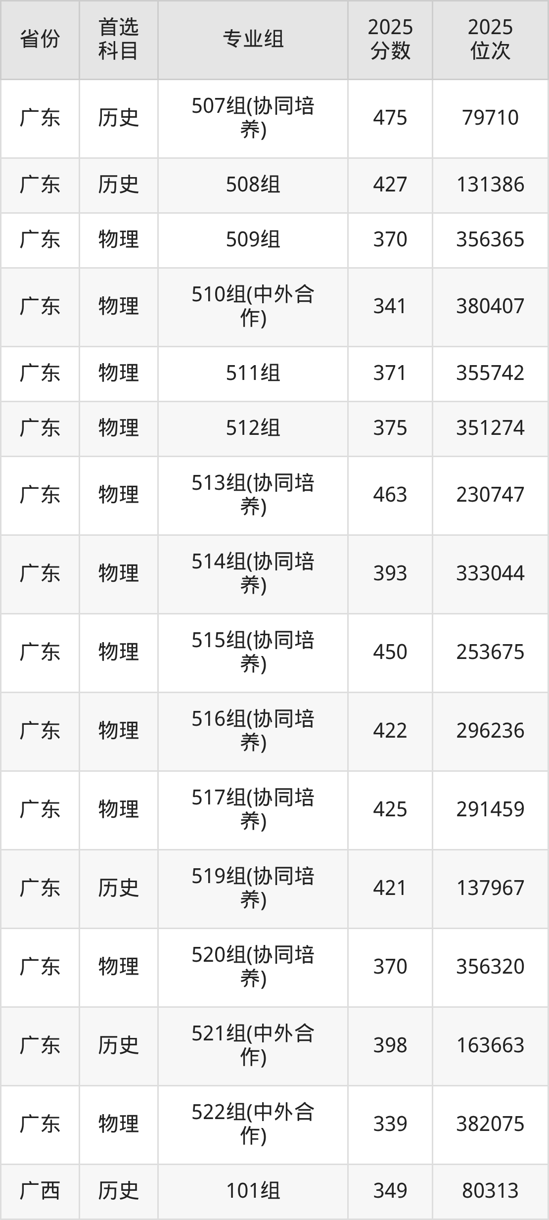 因为大部分地区目前只公布了院校(专业组)分数线,为了方便2026年考生参考,本文就整理出广东女子职业技术学院在全国各省不同科类的最低分: