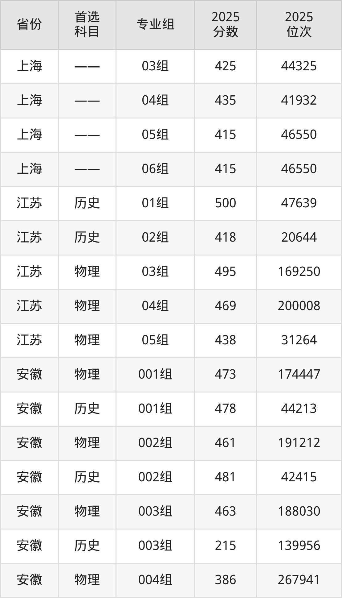 因为大部分地区目前只公布了院校(专业组)分数线,为了方便2026年考生参考,本文就整理出上海建桥学院在全国各省不同科类的最低分:
