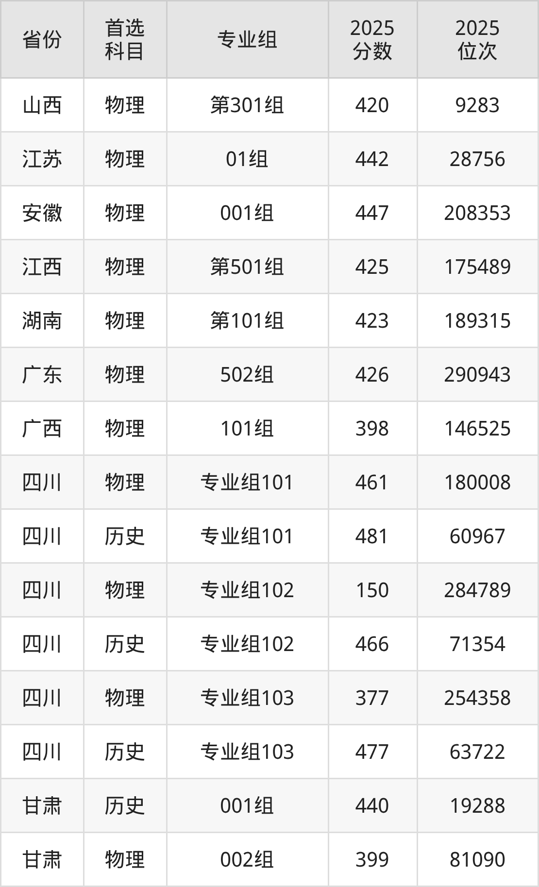 因为大部分地区目前只公布了院校(专业组)分数线,为了方便2026年考生参考,本文就整理出四川铁道职业学院在全国各省不同科类的最低分: