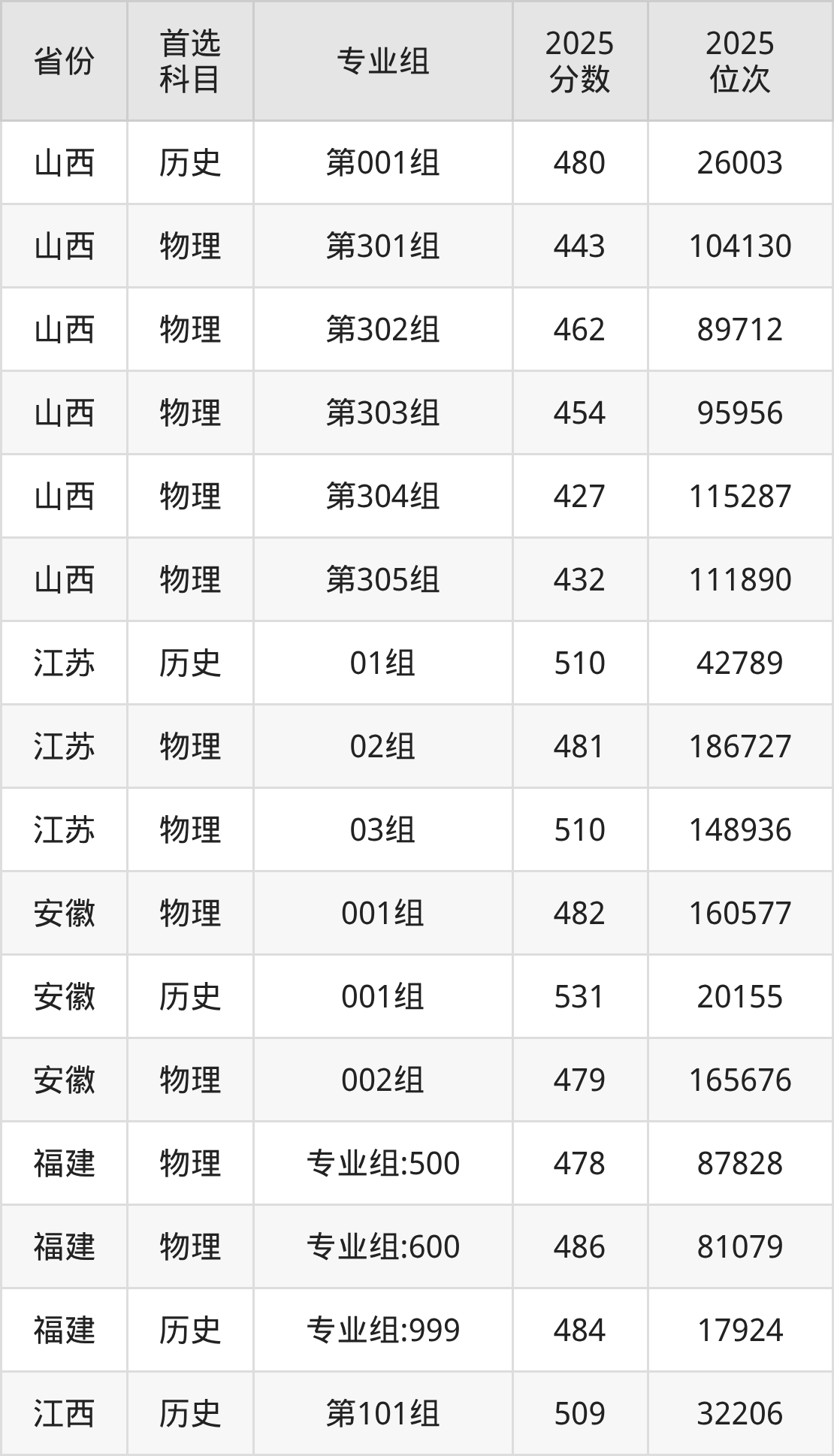 因为大部分地区目前只公布了院校(专业组)分数线,为了方便2026年考生参考,本文就整理出浙江师范大学行知学院在全国各省不同科类的最低分: