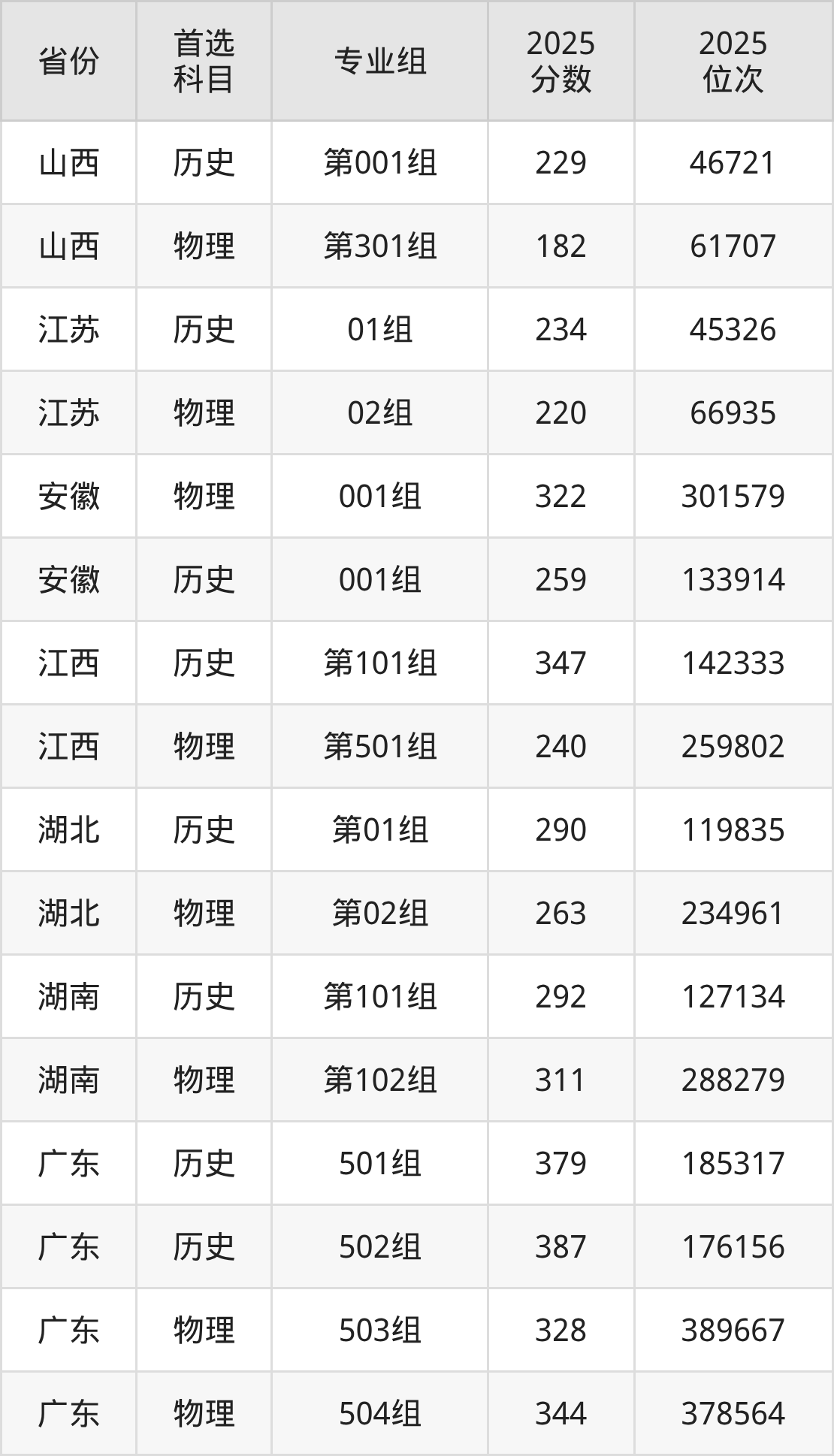 5.安徽:历史类259分、133914位,物理类322分、301579位