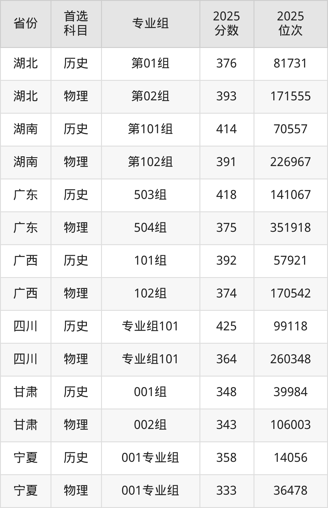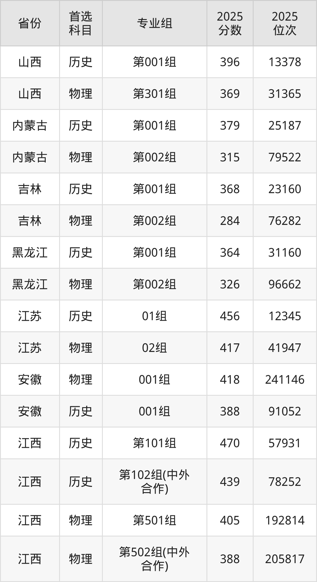 因为大部分地区目前只公布了院校(专业组)分数线,为了方便2026年考生参考,本文就整理出江西财经职业学院在全国各省不同科类的最低分:
