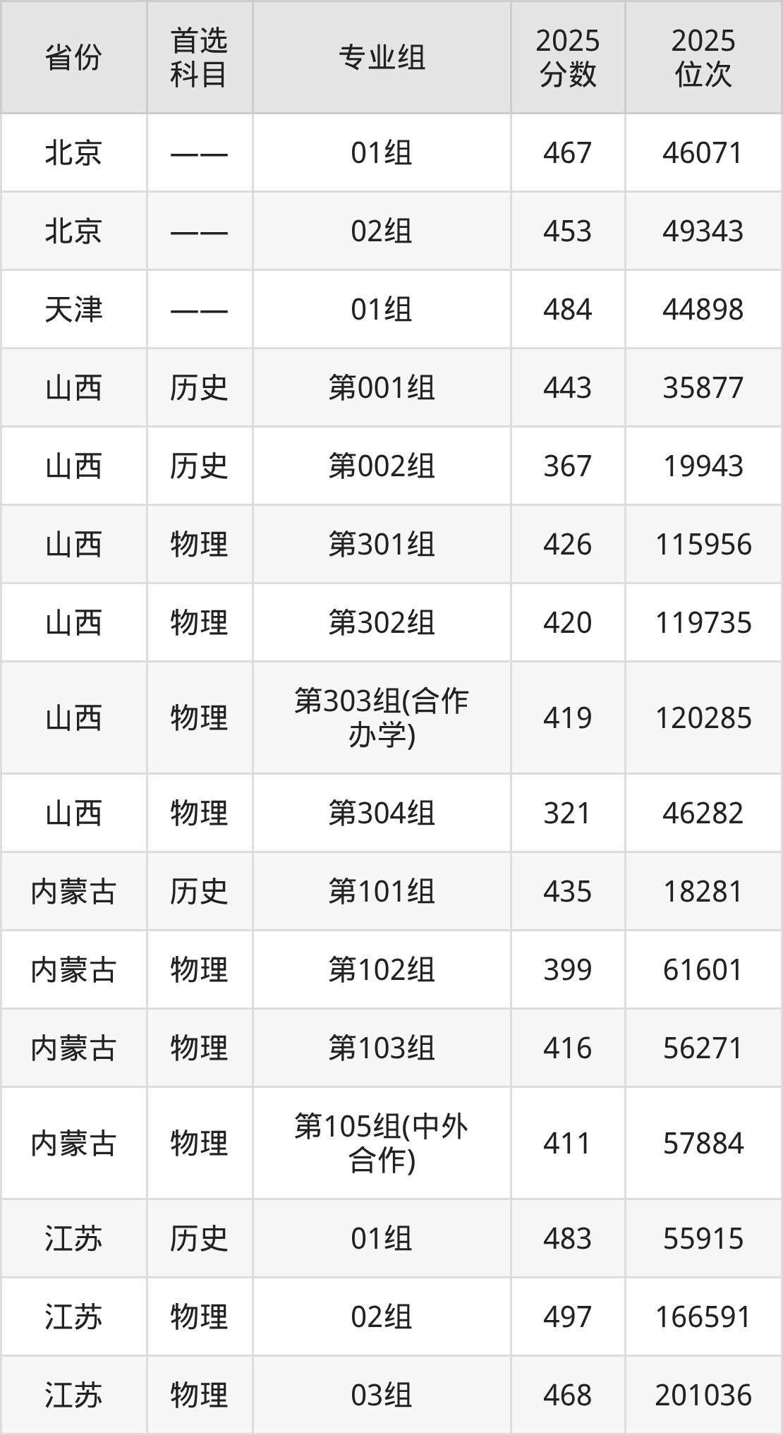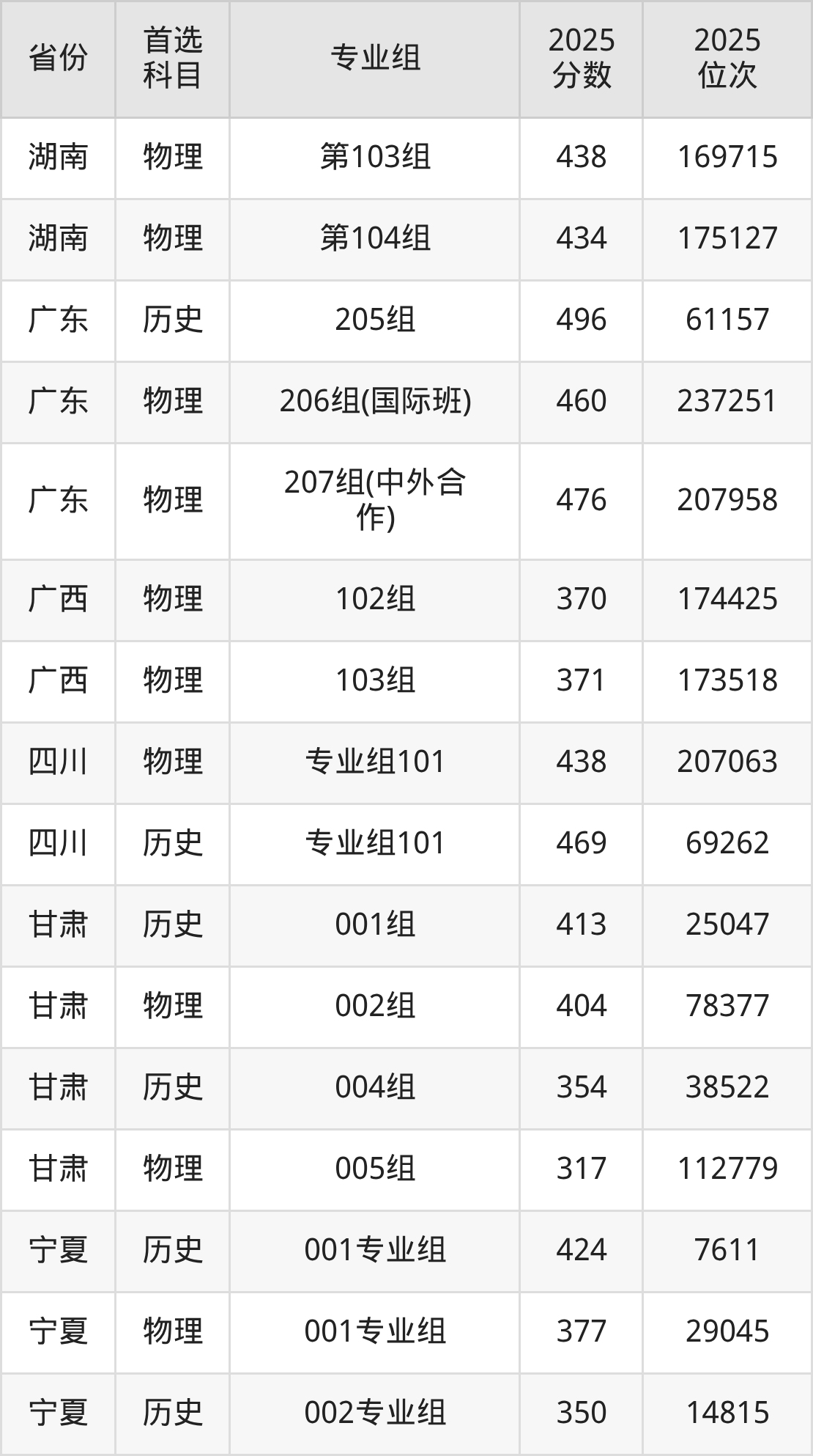 因为大部分地区目前只公布了院校(专业组)分数线,为了方便2026年考生参考,本文就整理出西安科技大学高新学院在全国各省不同科类的最低分: