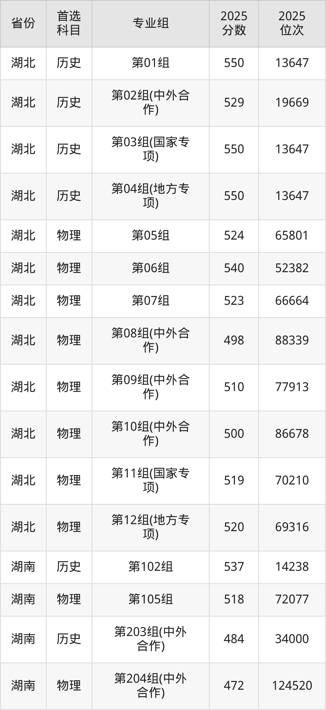 因为大部分地区目前只公布了院校(专业组)分数线,为了方便2026年考生参考,本文就整理出武汉轻工大学在全国各省不同科类的最低分: