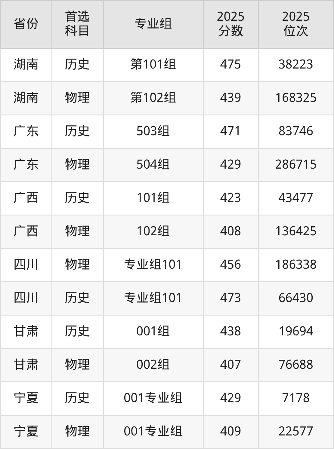 13.湖南:历史类475分、38223位,物理类439分、168325位