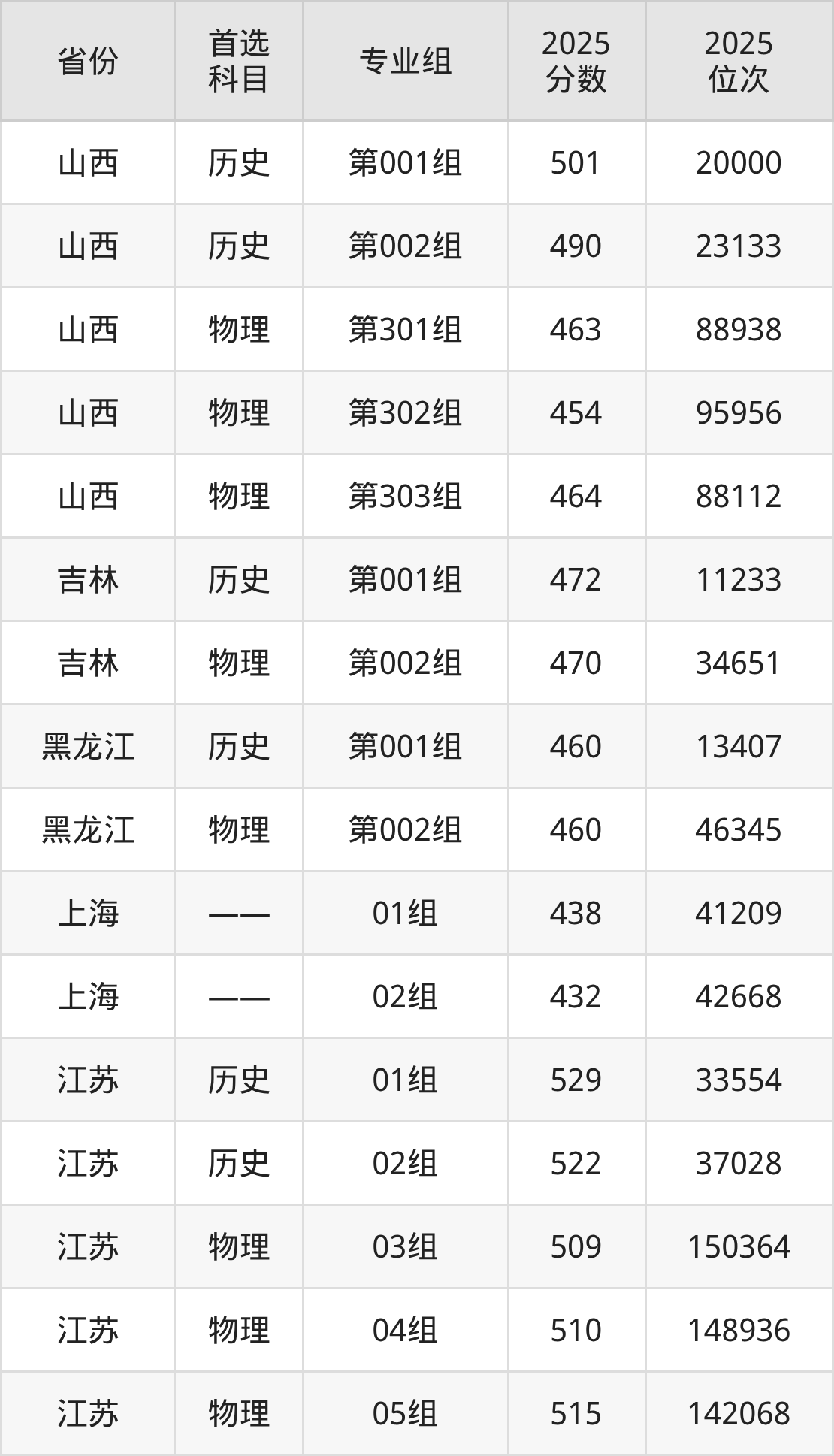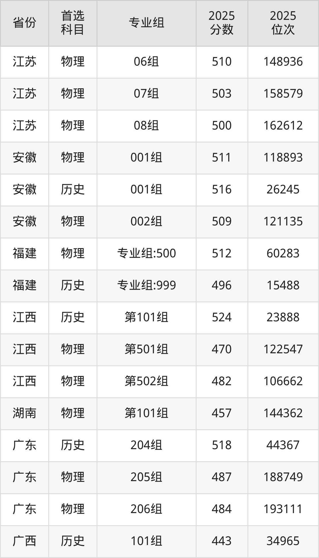 因为大部分地区目前只公布了院校(专业组)分数线,为了方便2026年考生参考,本文就整理出南京理工大学紫金学院在全国各省不同科类的最低分: