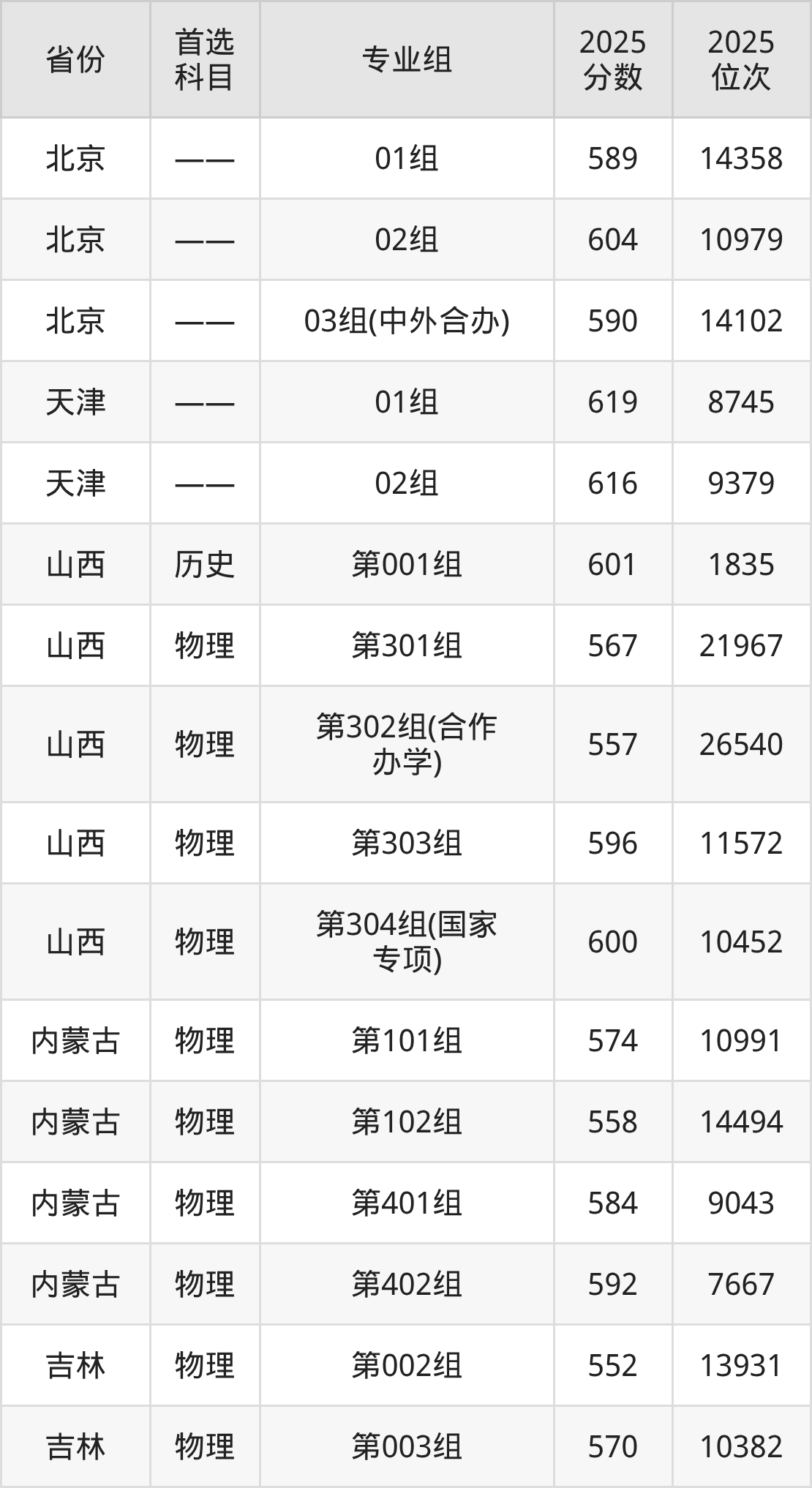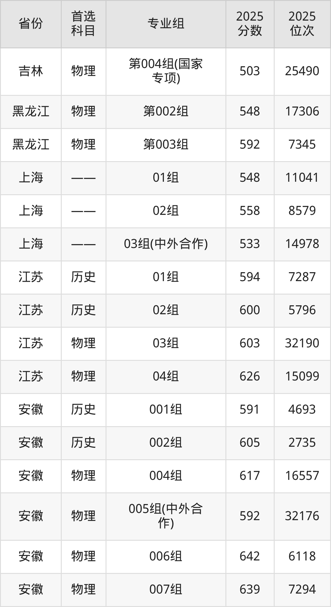 因为大部分地区目前只公布了院校(专业组)分数线,为了方便2026年考生参考,本文就整理出合肥工业大学在全国各省不同科类的最低分:
