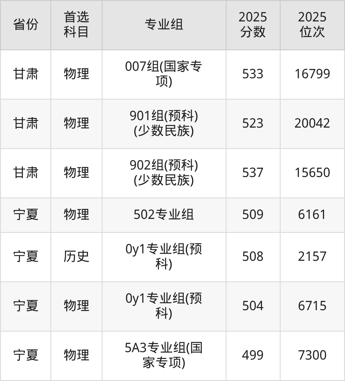 25.宁夏:历史类508分、2157位,物理类499分、7300位