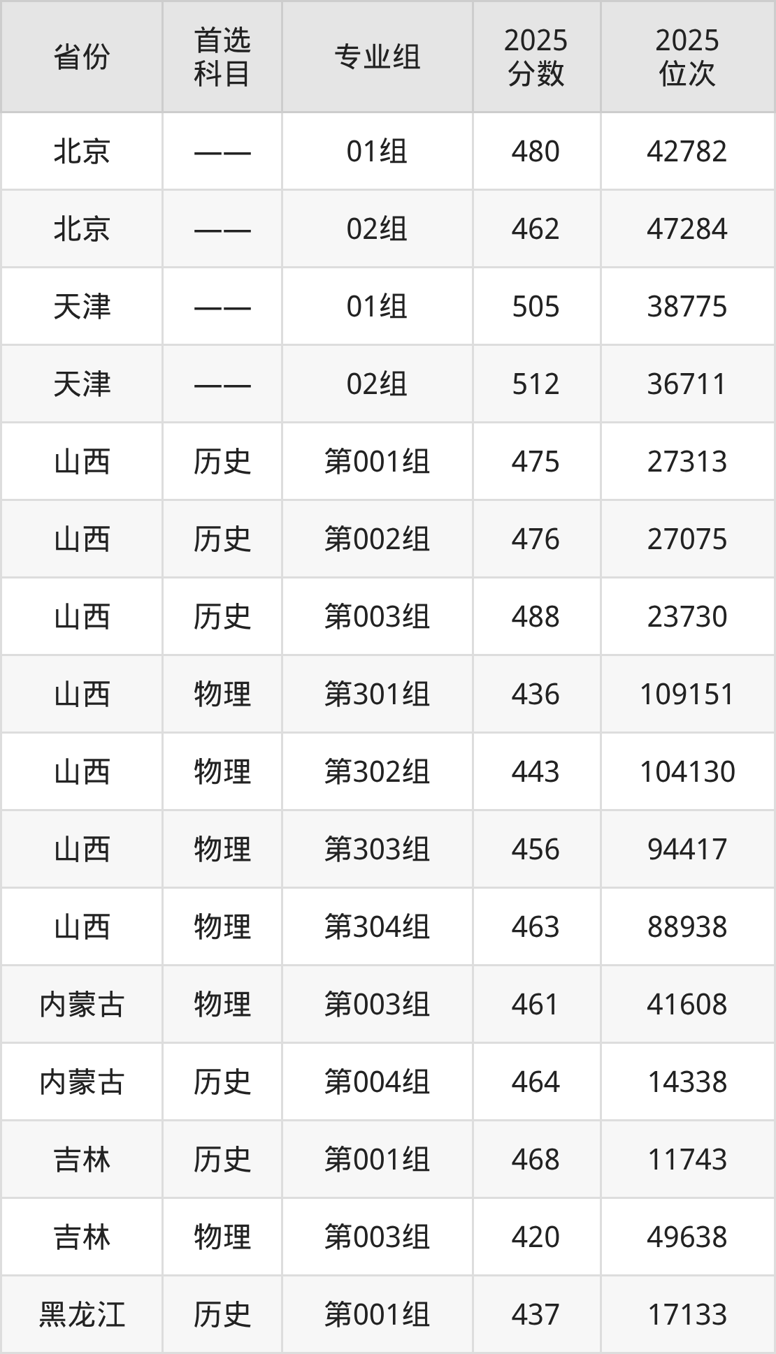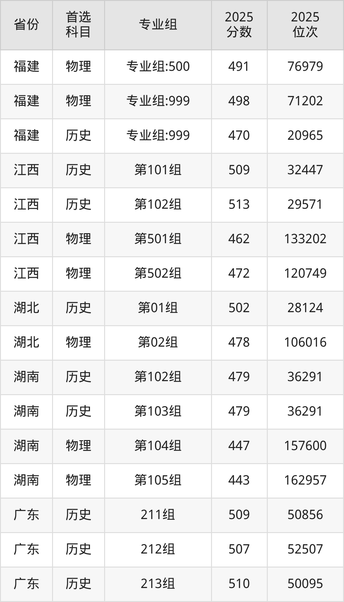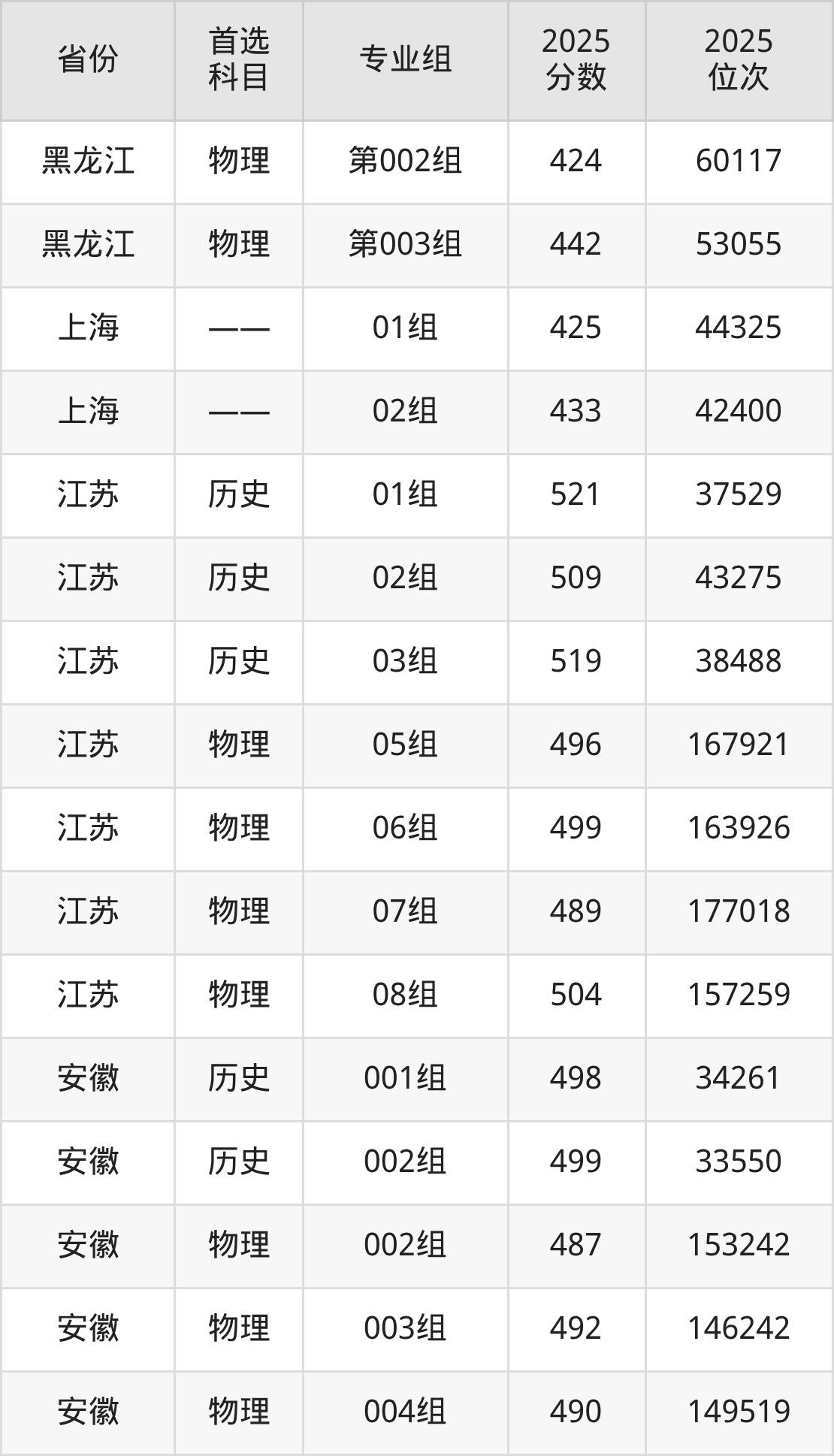 因为大部分地区目前只公布了院校(专业组)分数线,为了方便2026年考生参考,本文就整理出南京航空航天大学金城学院在全国各省不同科类的最低分: