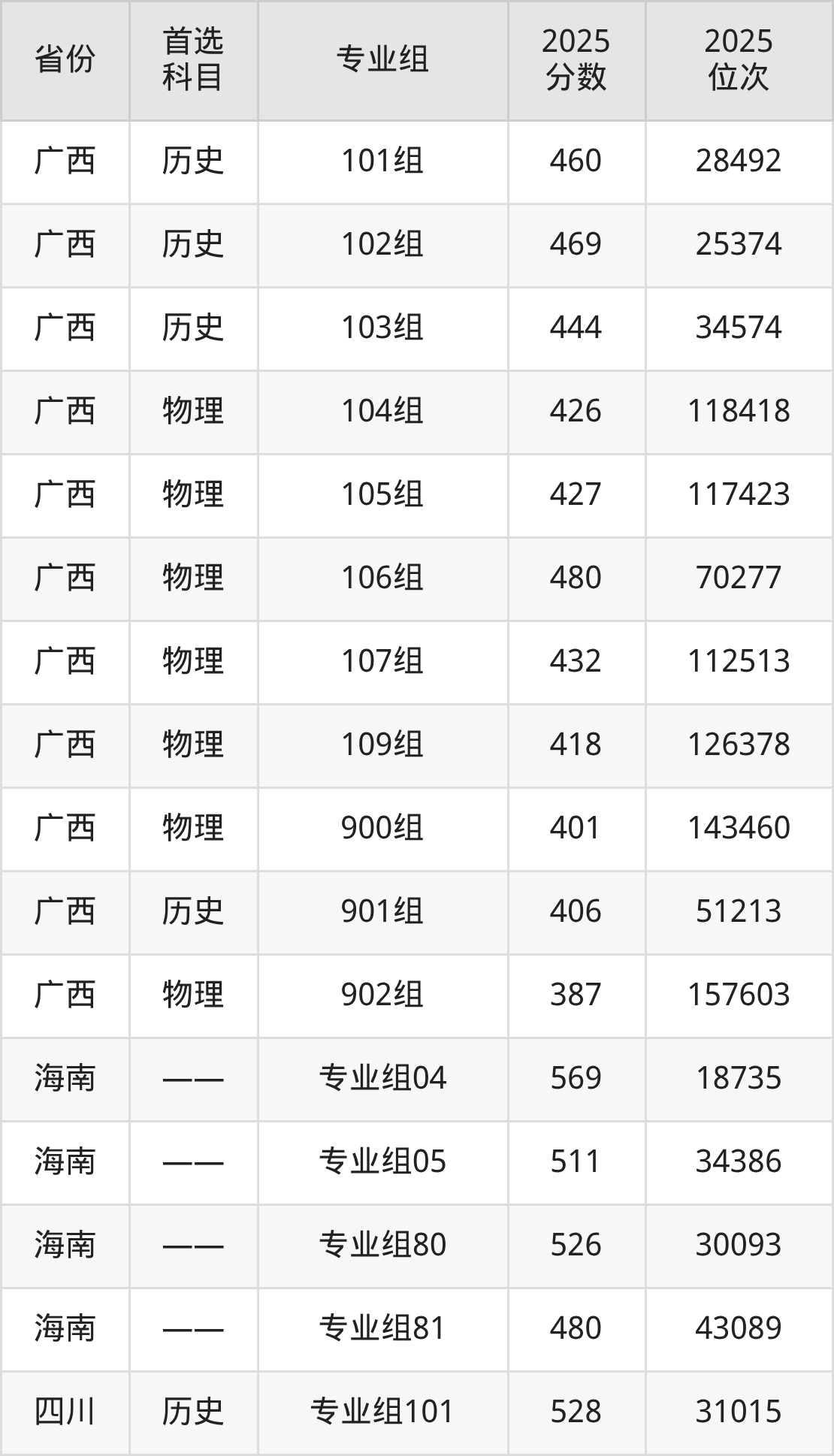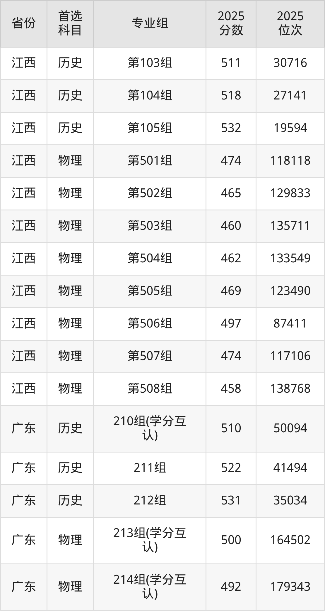 因为大部分地区目前只公布了院校(专业组)分数线,为了方便2026年考生参考,本文就整理出豫章师范学院在全国各省不同科类的最低分: