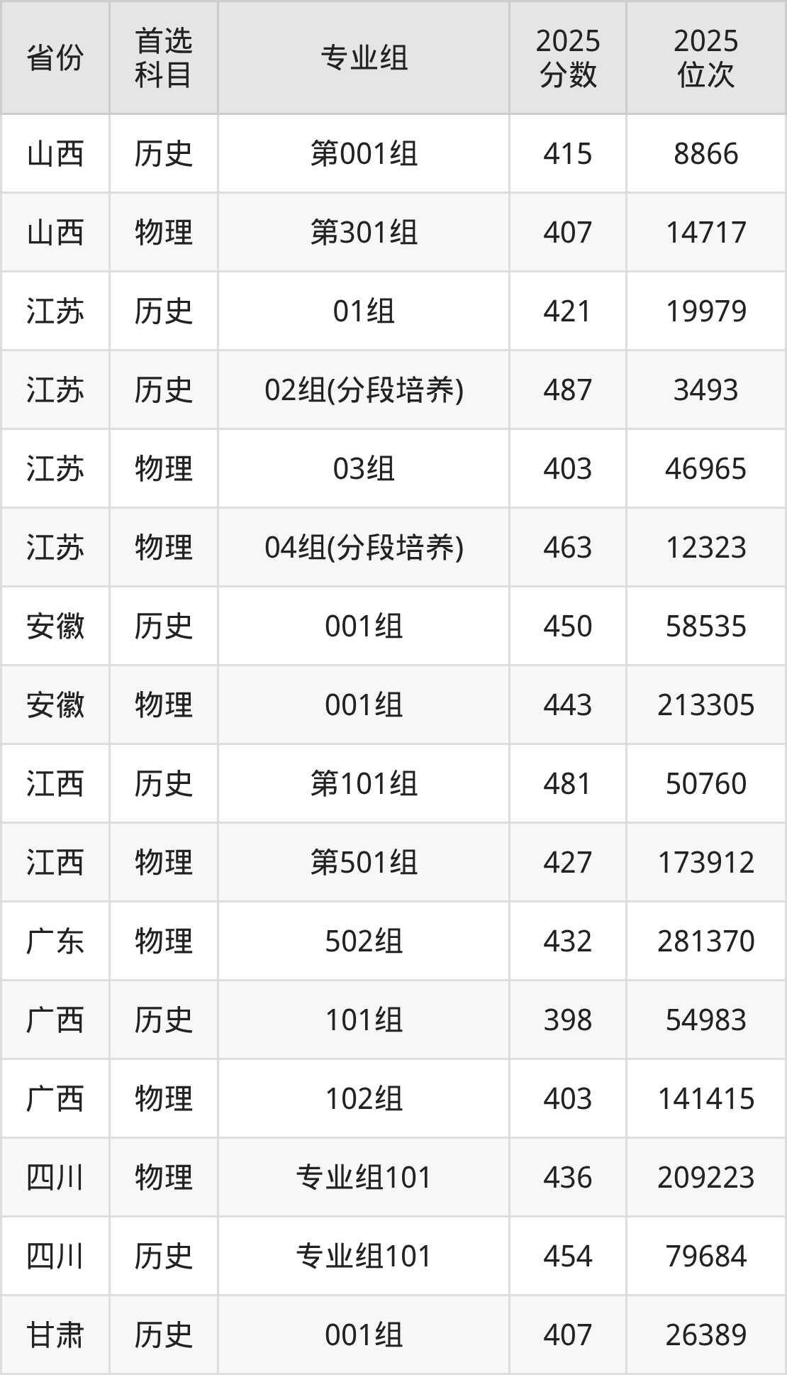 2.山西:历史类415分、8866位,物理类407分、14717位