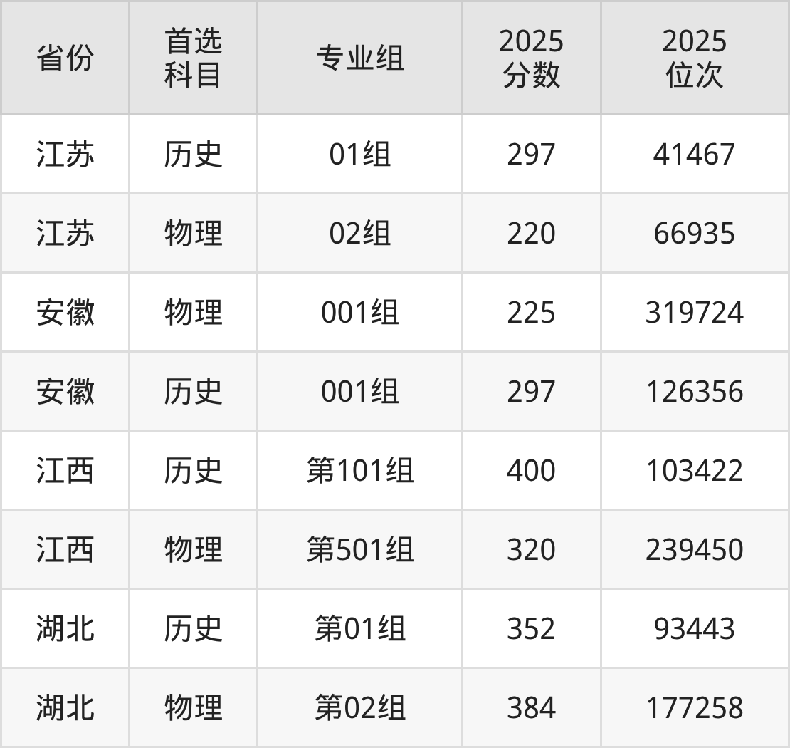 因为大部分地区目前只公布了院校(专业组)分数线,为了方便2026年考生参考,本文就整理出苏州工业园区职业技术学院在全国各省不同科类的最低分: