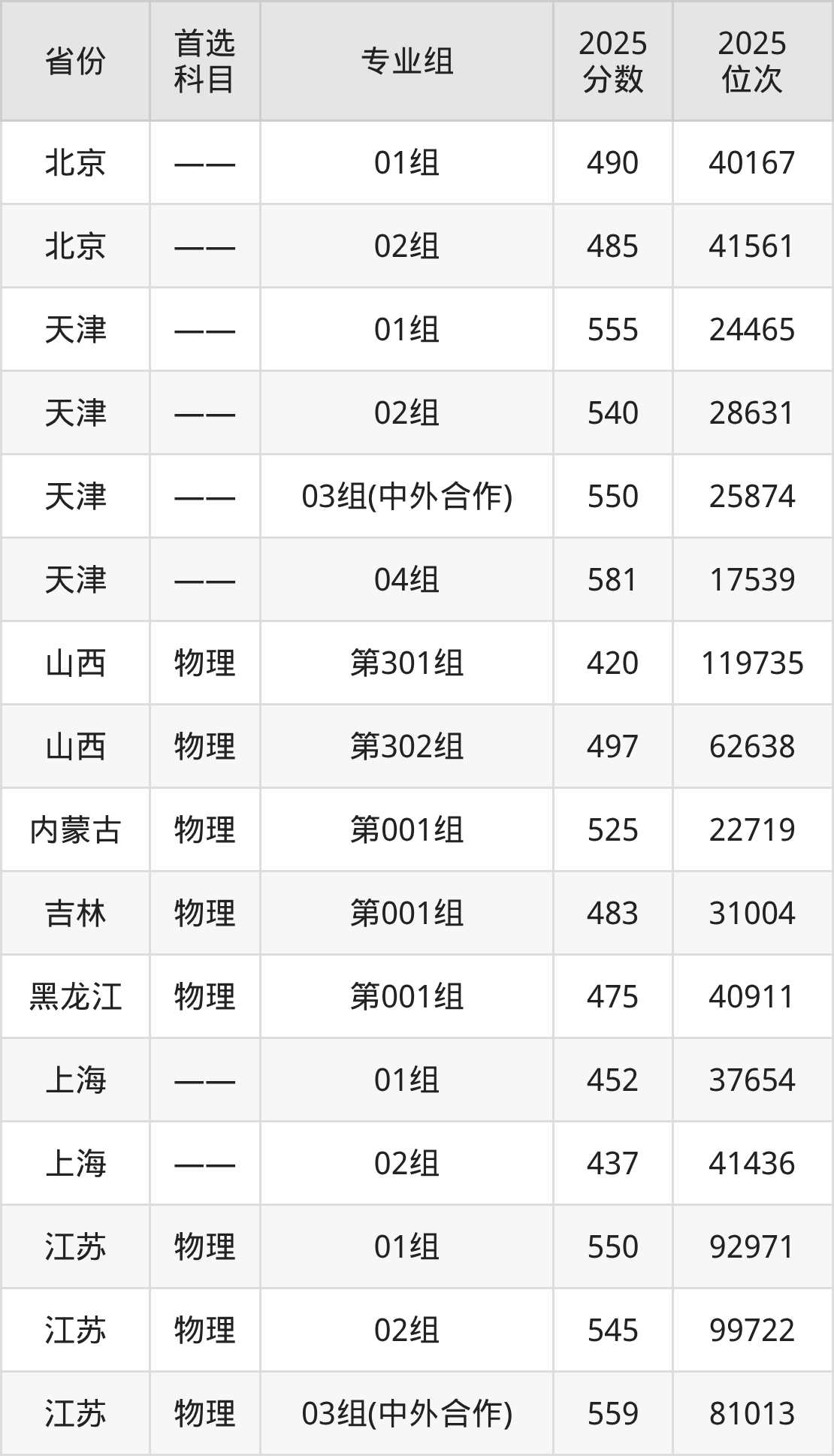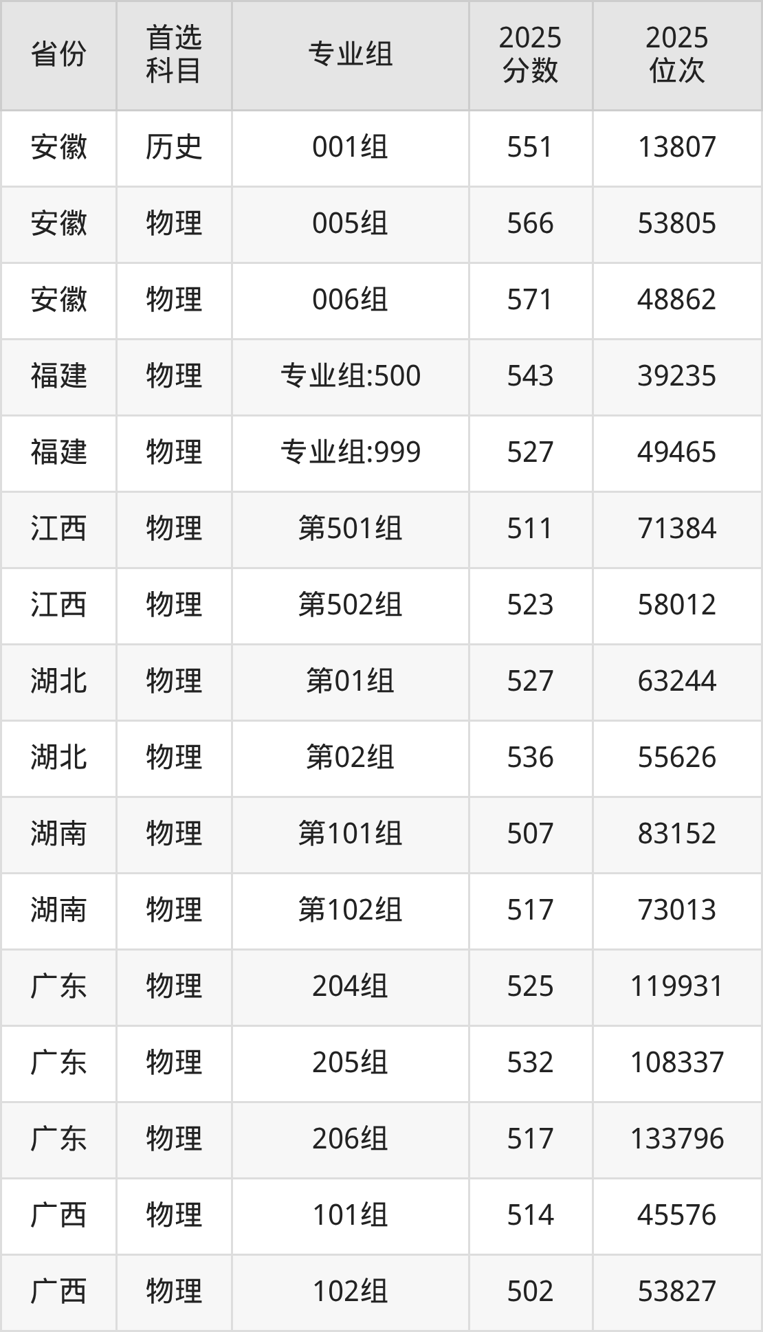 因为大部分地区目前只公布了院校(专业组)分数线,为了方便2026年考生参考,本文就整理出安徽理工大学在全国各省不同科类的最低分: