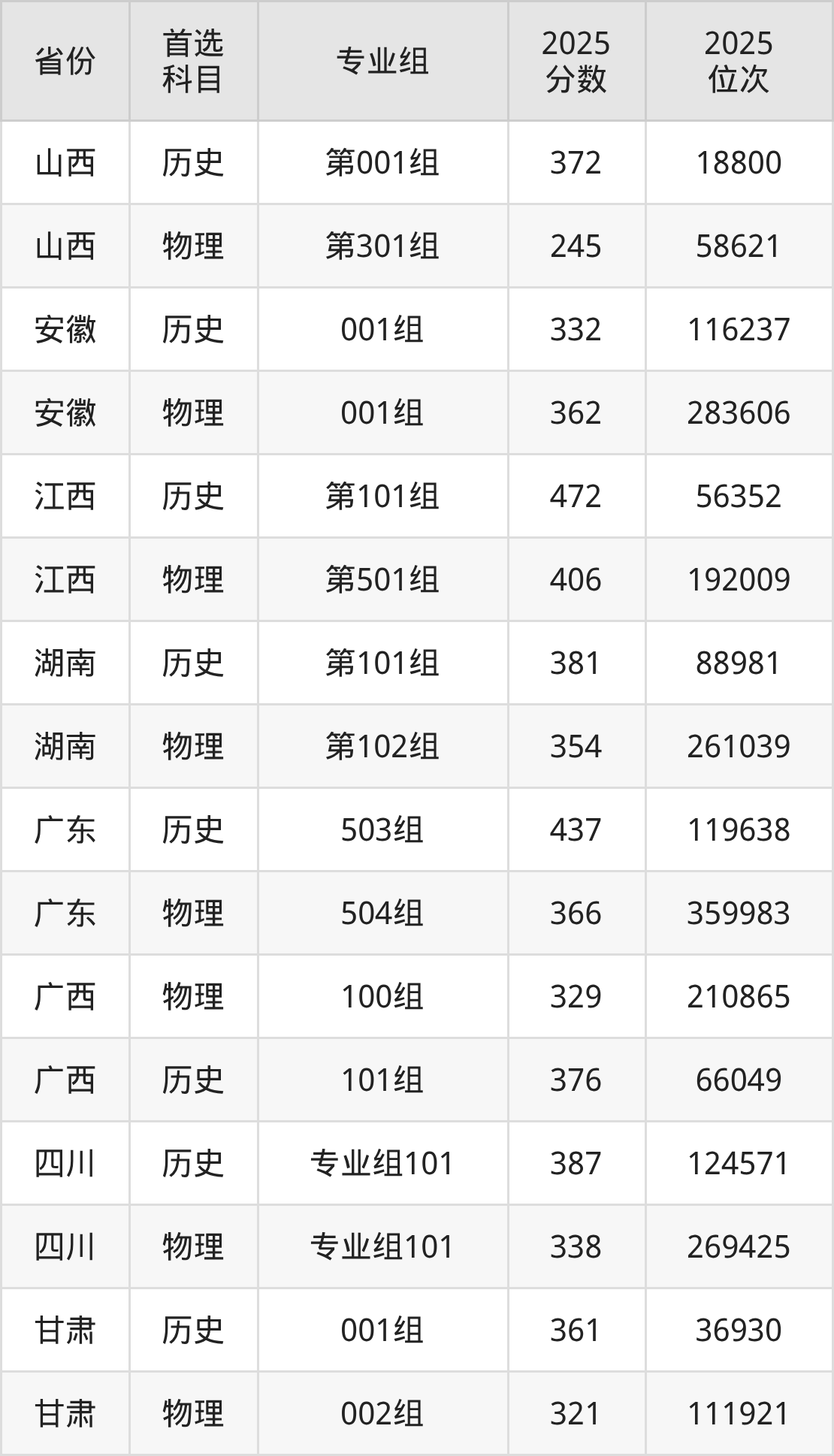 因为大部分地区目前只公布了院校(专业组)分数线,为了方便2026年考生参考,本文就整理出漳州城市职业学院在全国各省不同科类的最低分: