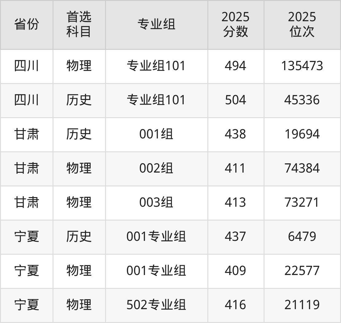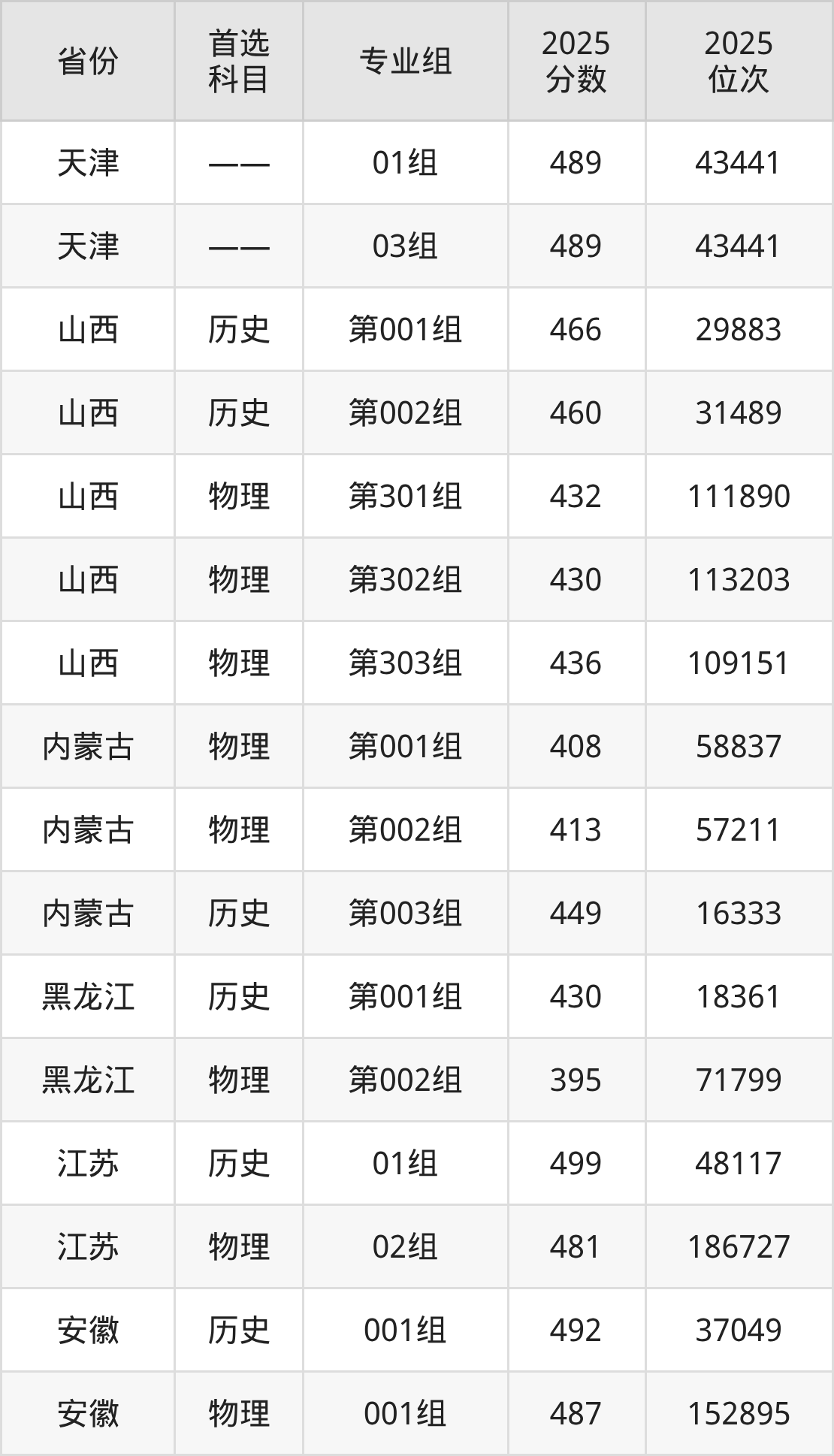 因为大部分地区目前只公布了院校(专业组)分数线,为了方便2026年考生参考,本文就整理出晋中信息学院在全国各省不同科类的最低分: