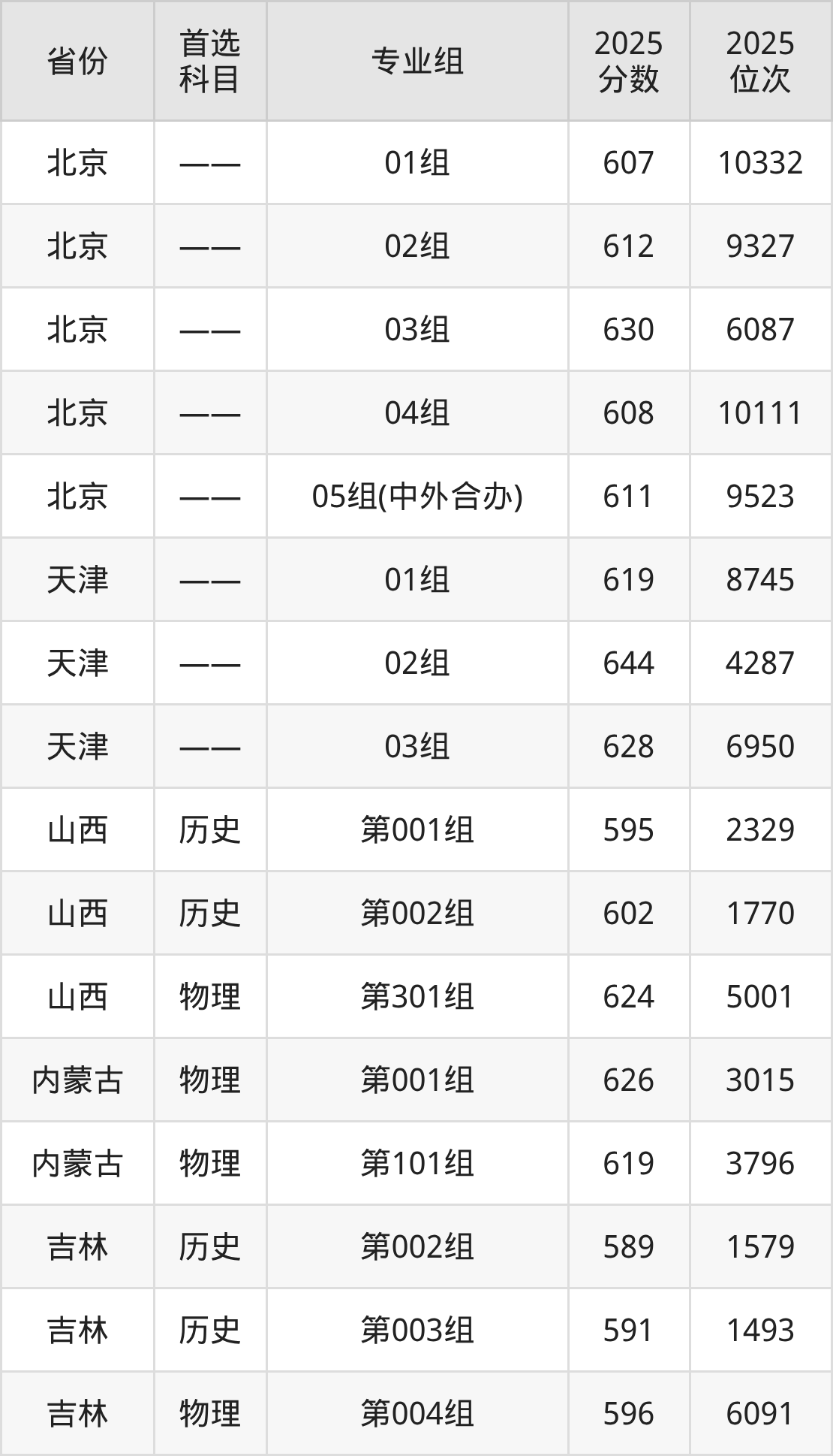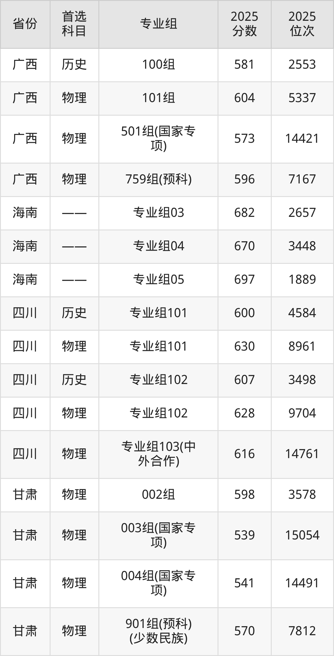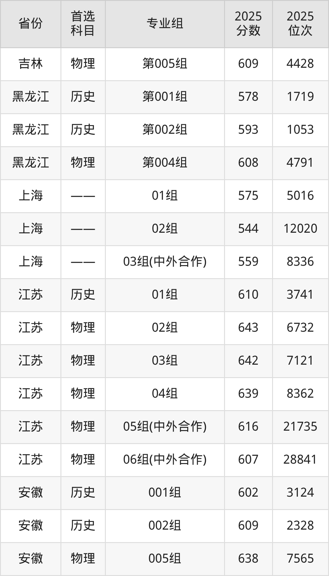 因为大部分地区目前只公布了院校(专业组)分数线,为了方便2026年考生参考,本文就整理出南京理工大学在全国各省不同科类的最低分: