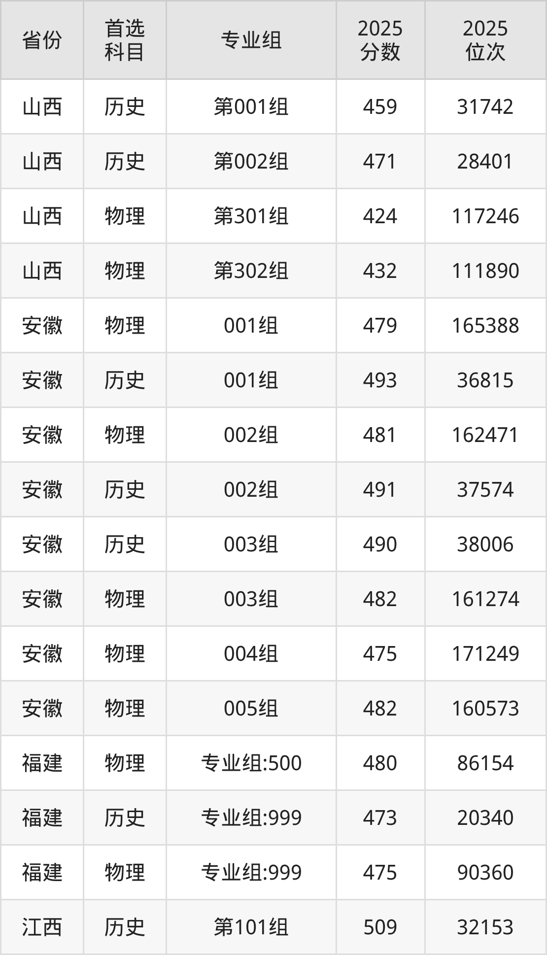 因为大部分地区目前只公布了院校(专业组)分数线,为了方便2026年考生参考,本文就整理出福建师范大学协和学院在全国各省不同科类的最低分: