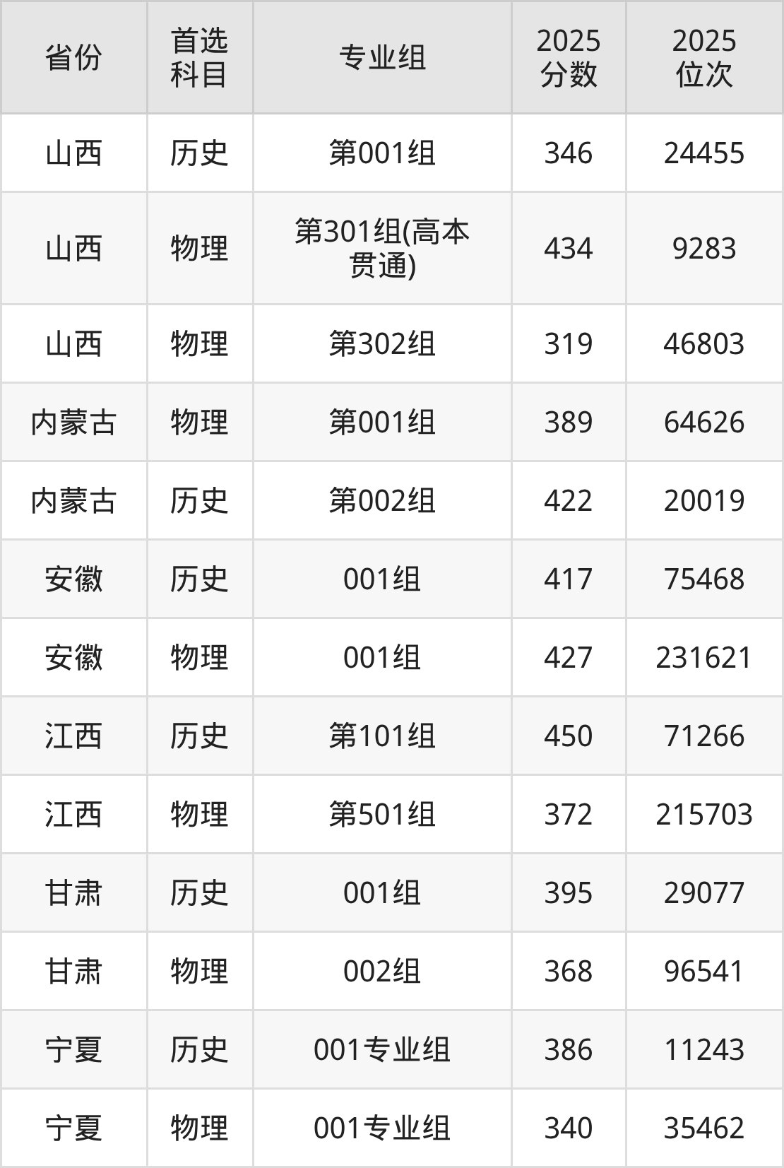 因为大部分地区目前只公布了院校(专业组)分数线,为了方便2026年考生参考,本文就整理出山西药科职业学院在全国各省不同科类的最低分:
