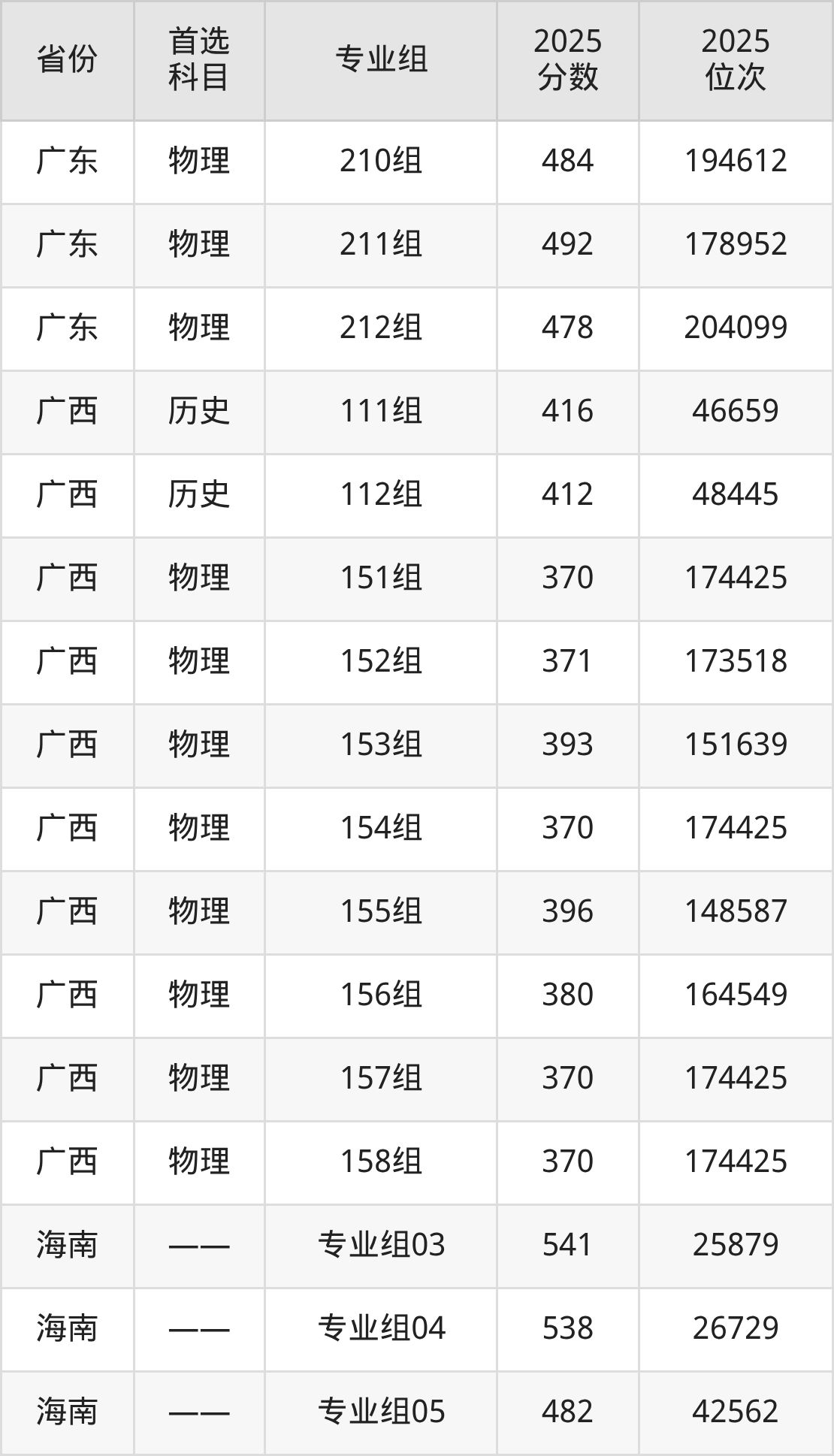 因为大部分地区目前只公布了院校(专业组)分数线,为了方便2026年考生参考,本文就整理出南宁学院在全国各省不同科类的最低分:
