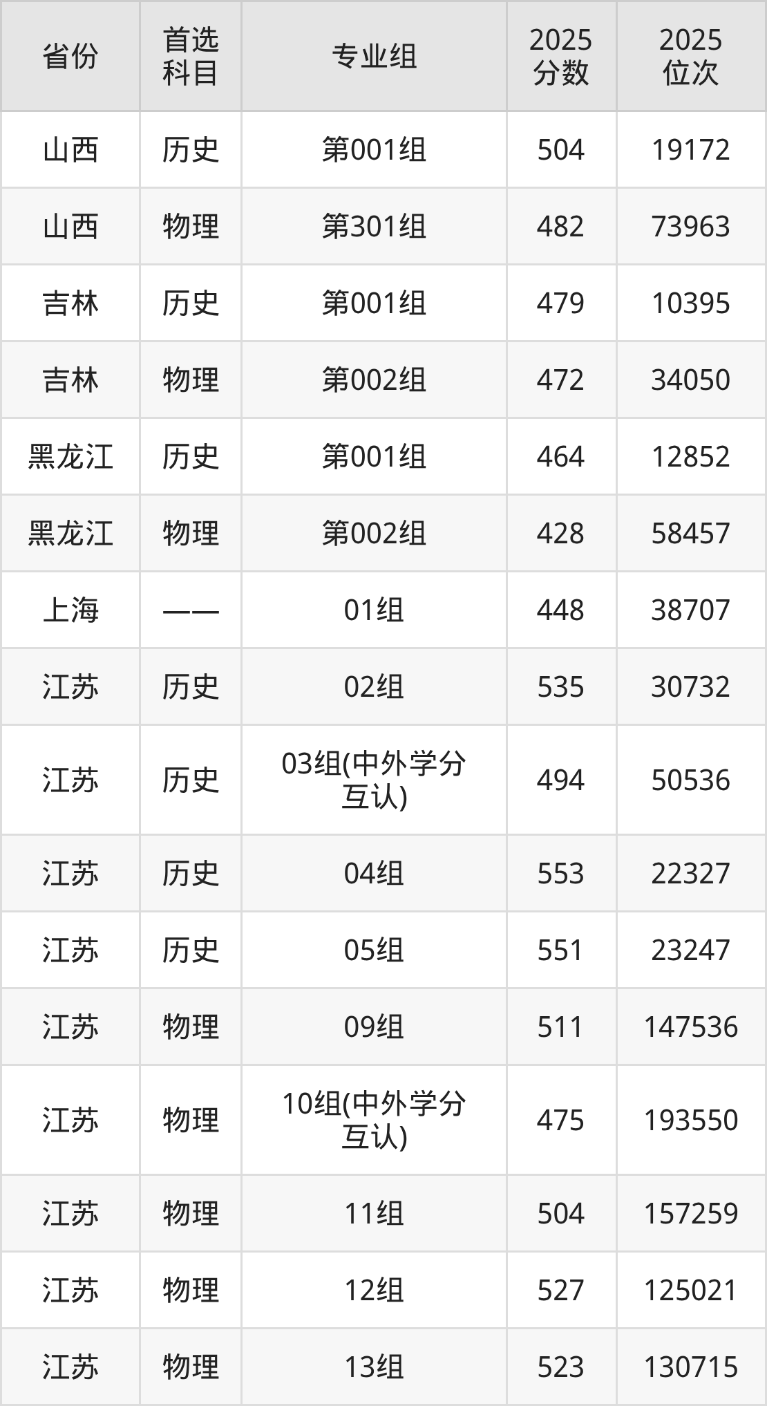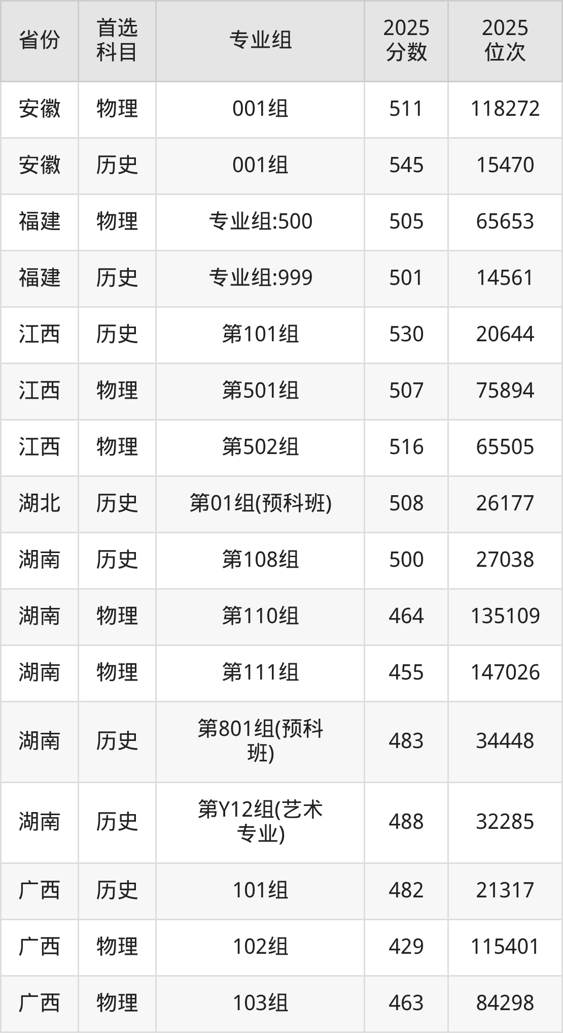 因为大部分地区目前只公布了院校(专业组)分数线,为了方便2026年考生参考,本文就整理出淮阴师范学院在全国各省不同科类的最低分: