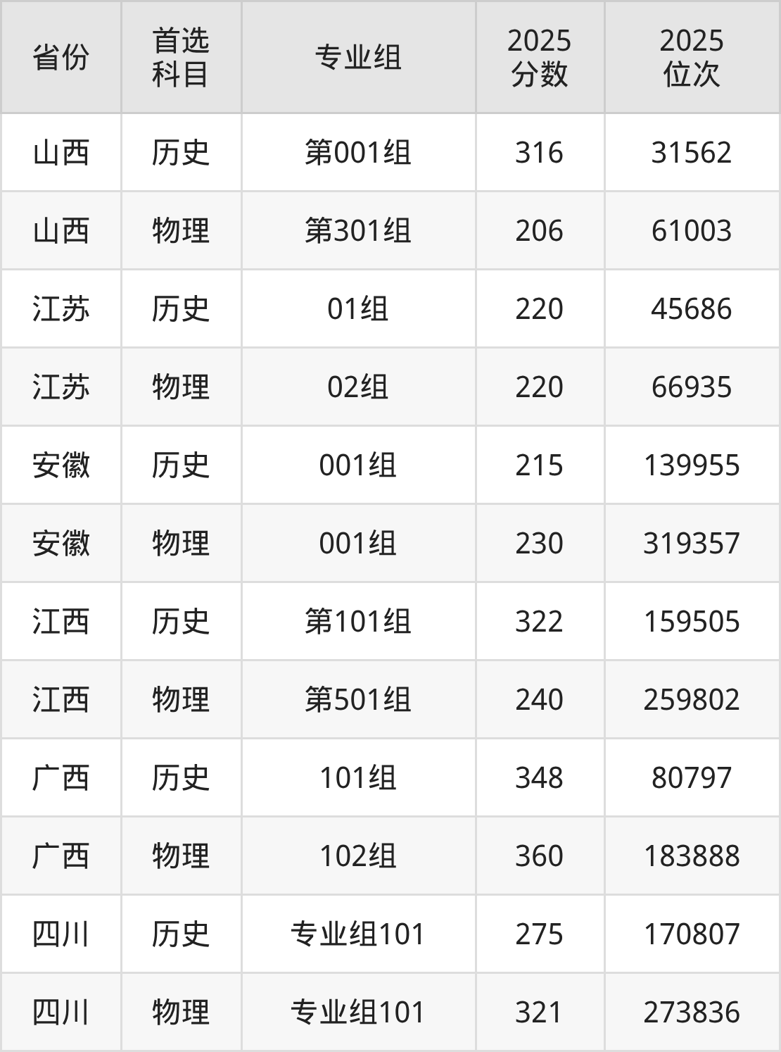 因为大部分地区目前只公布了院校(专业组)分数线,为了方便2026年考生参考,本文就整理出无锡南洋职业技术学院在全国各省不同科类的最低分: