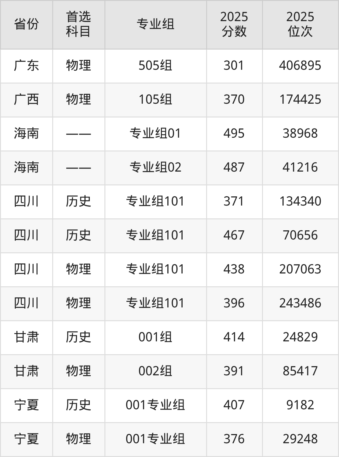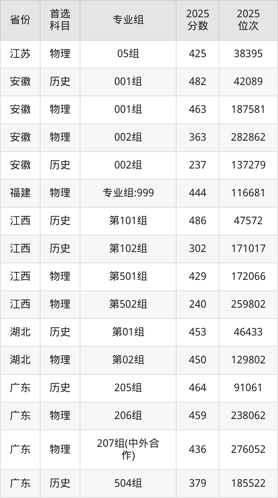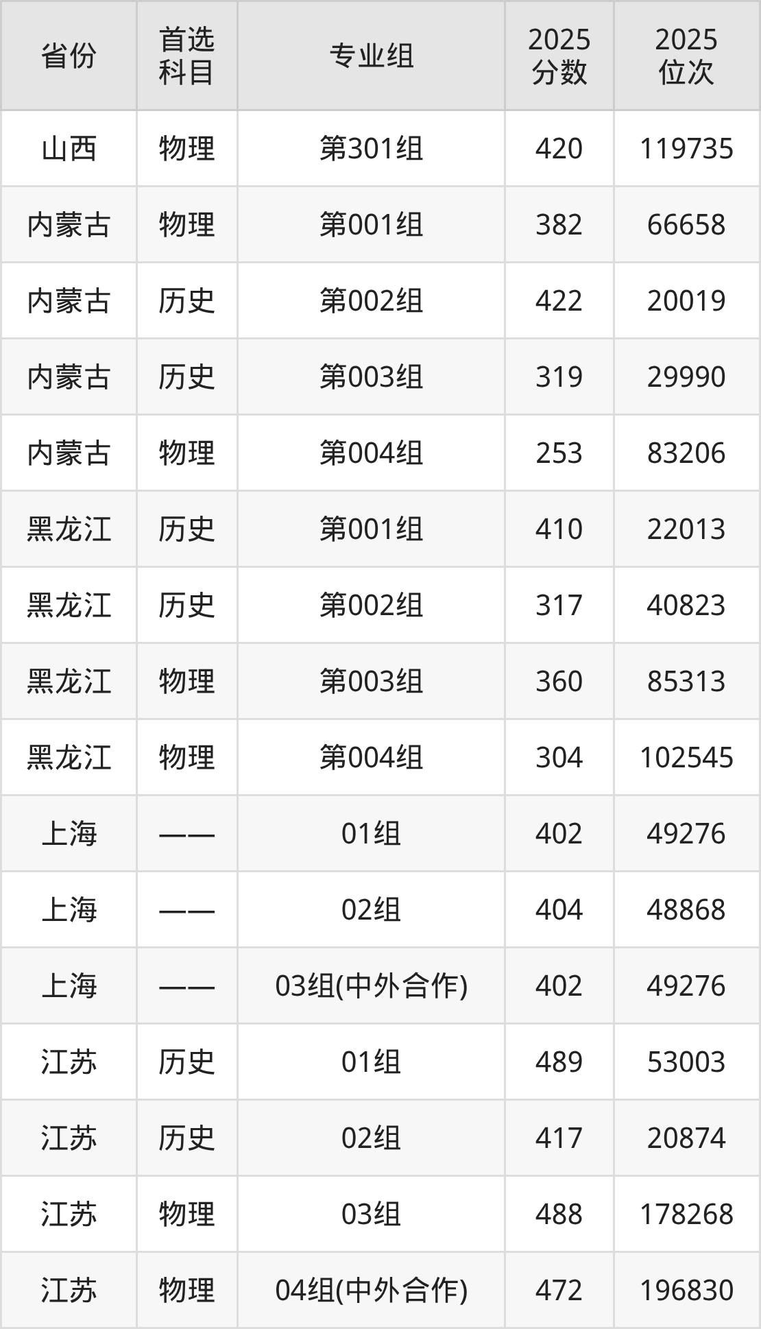 因为大部分地区目前只公布了院校(专业组)分数线,为了方便2026年考生参考,本文就整理出上海中侨职业技术大学在全国各省不同科类的最低分: