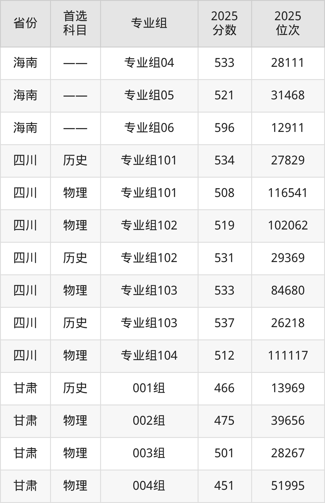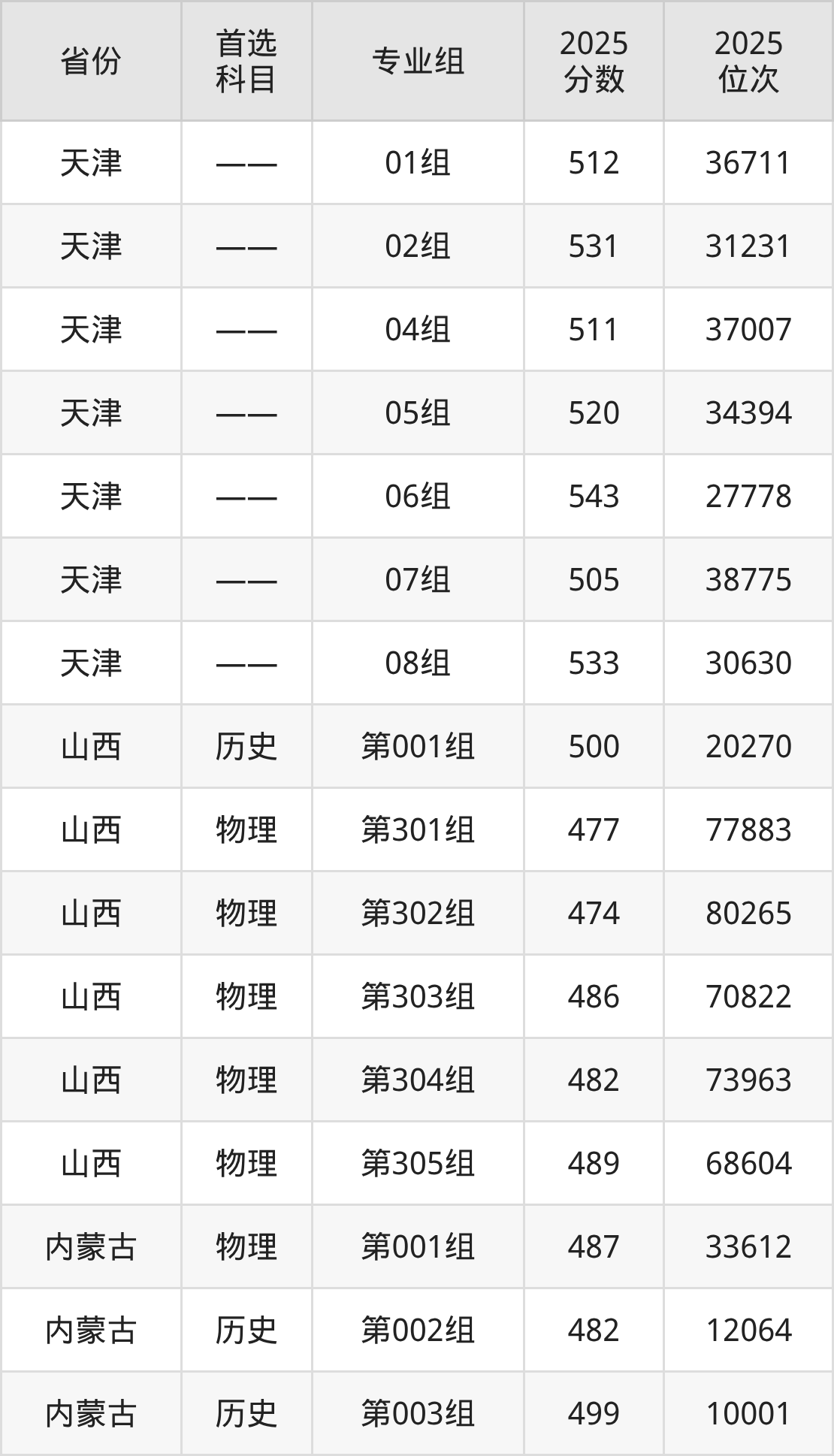 因为大部分地区目前只公布了院校(专业组)分数线,为了方便2026年考生参考,本文就整理出昆明学院在全国各省不同科类的最低分: