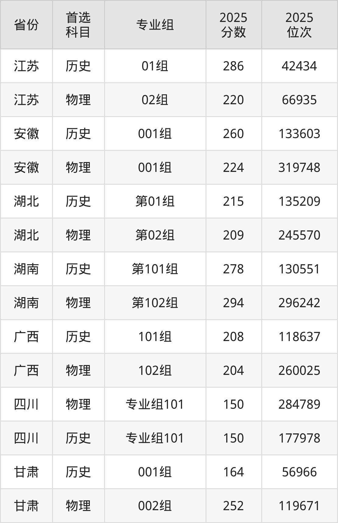 12.甘肃:历史类164分、56966位,物理类252分、119671位