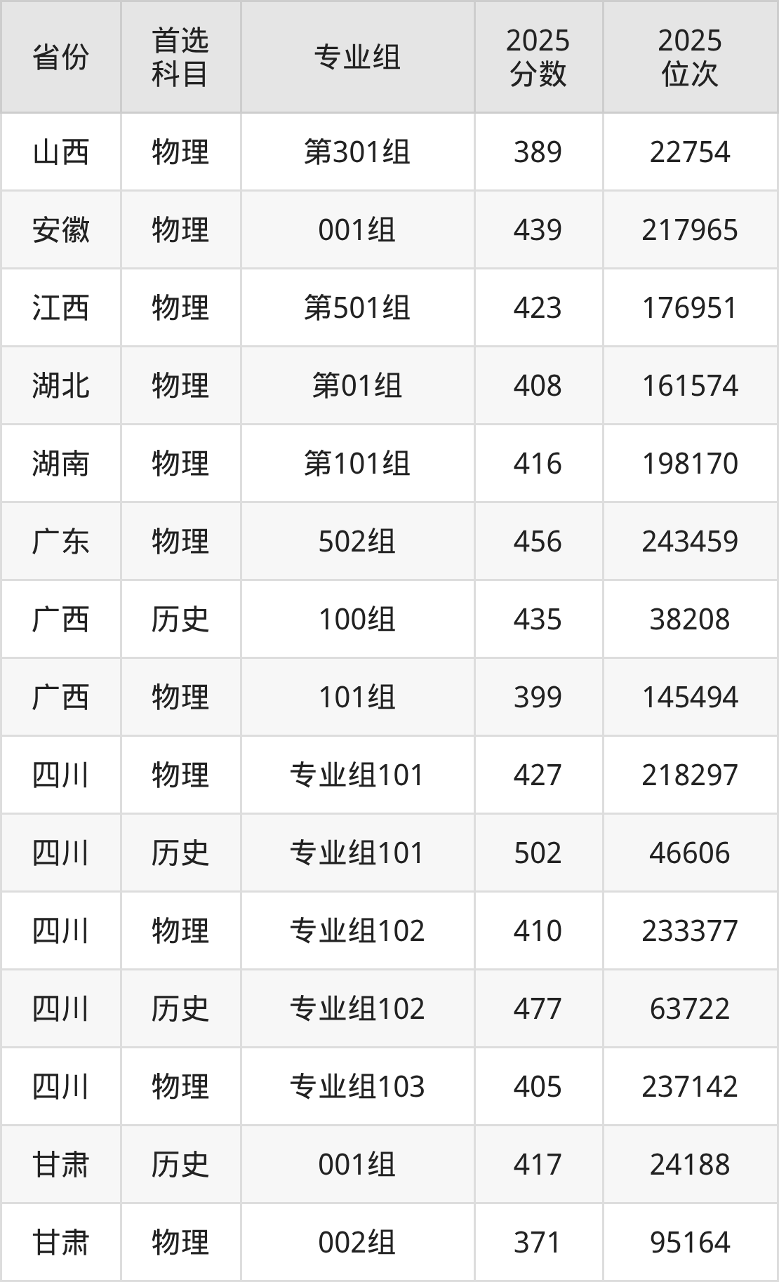 因为大部分地区目前只公布了院校(专业组)分数线,为了方便2026年考生参考,本文就整理出遵义医药高等专科学校在全国各省不同科类的最低分: