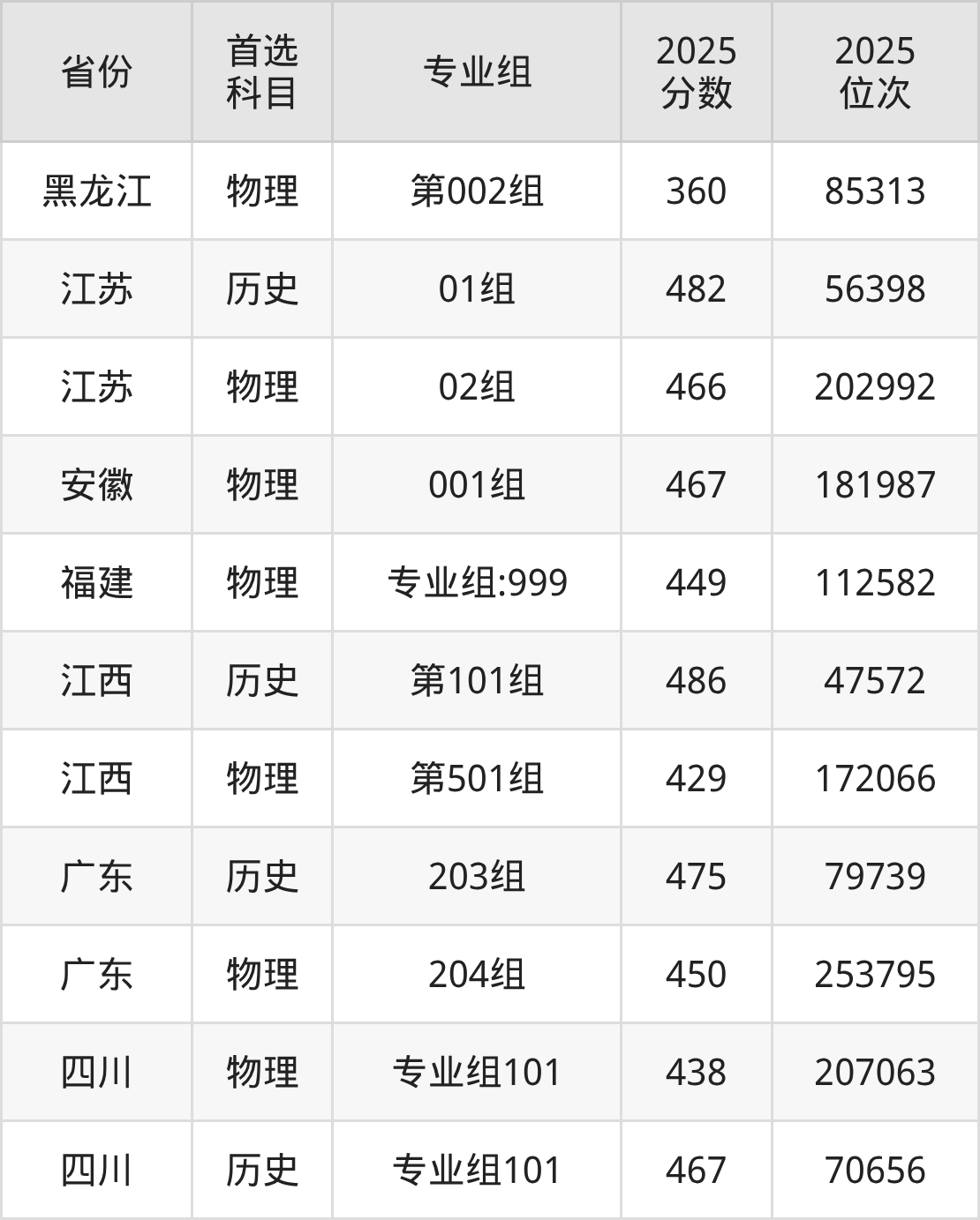 因为大部分地区目前只公布了院校(专业组)分数线,为了方便2026年考生参考,本文就整理出上海兴伟学院在全国各省不同科类的最低分: