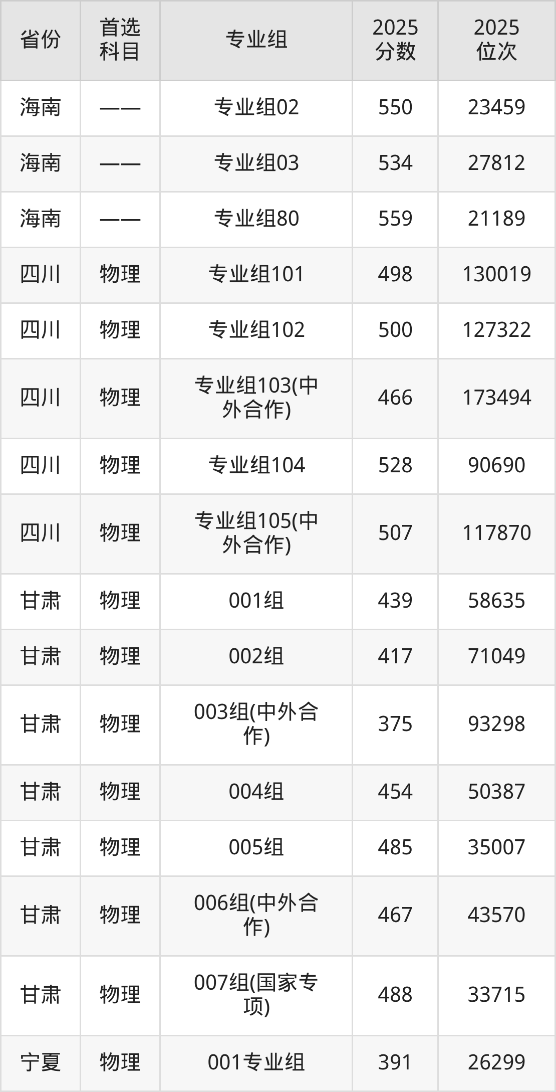 25.宁夏:物理类391分、26299位