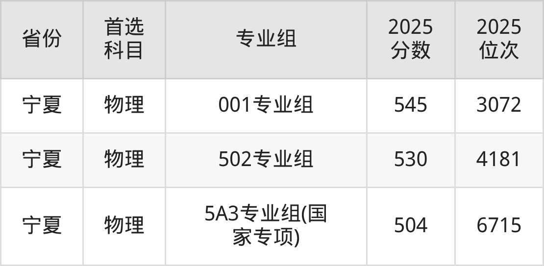 25.宁夏:物理类504分、6715位