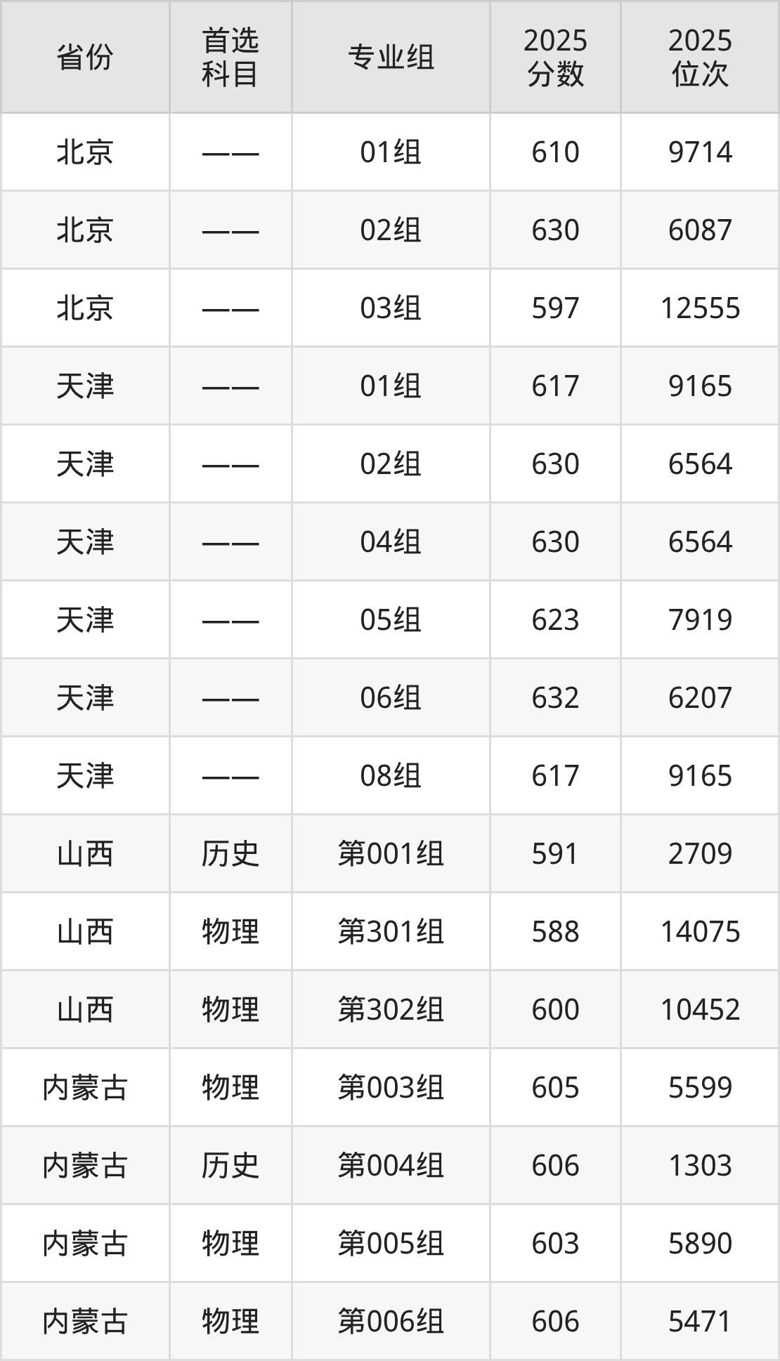 因为大部分地区目前只公布了院校(专业组)分数线,为了方便2026年考生参考,本文就整理出南京师范大学在全国各省不同科类的最低分: