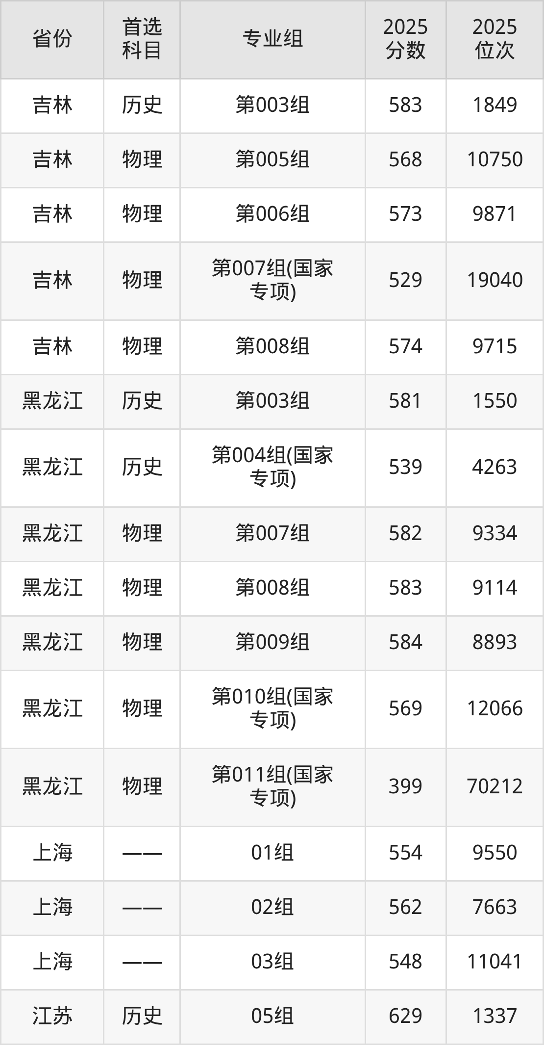 南京师范大学在全国各省分专业组录取分数线: