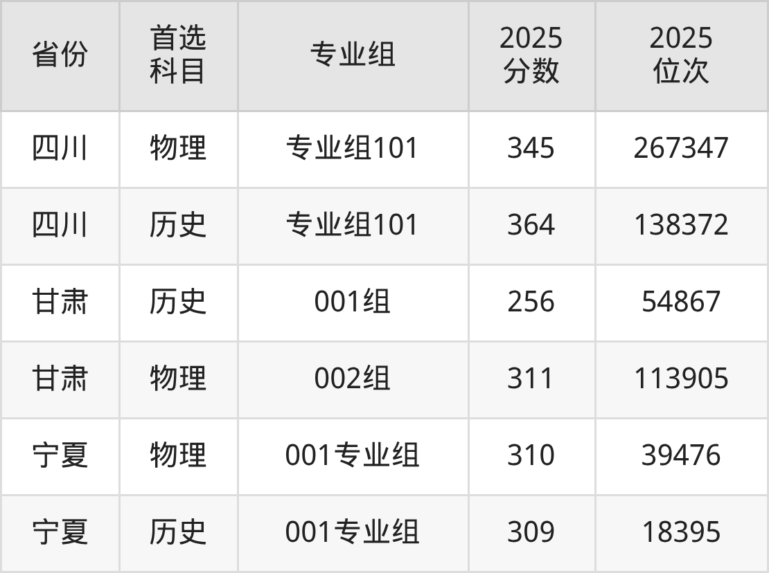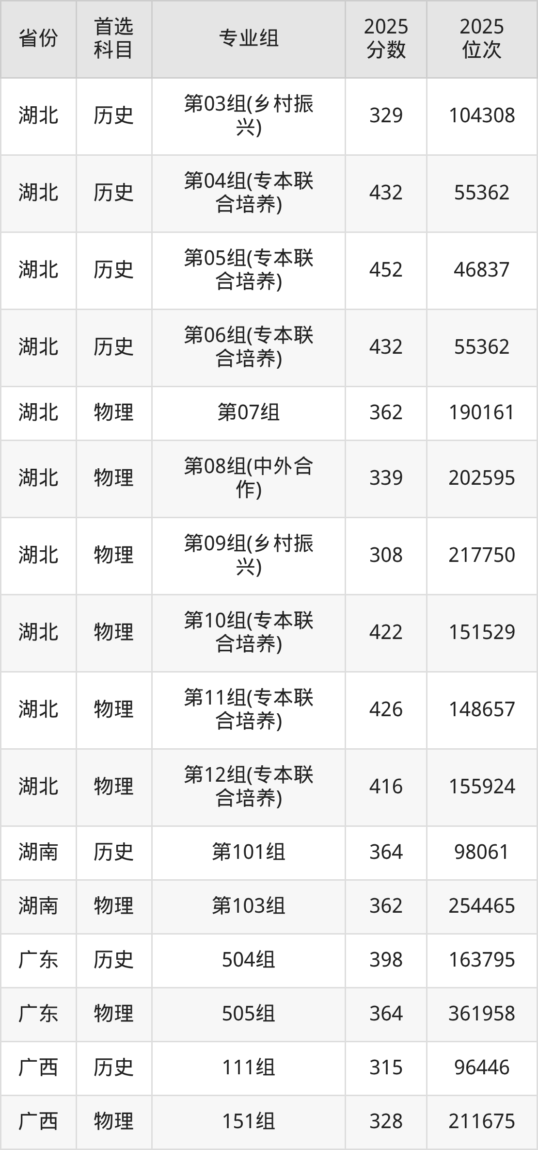 因为大部分地区目前只公布了院校(专业组)分数线,为了方便2026年考生参考,本文就整理出咸宁职业技术学院在全国各省不同科类的最低分:
