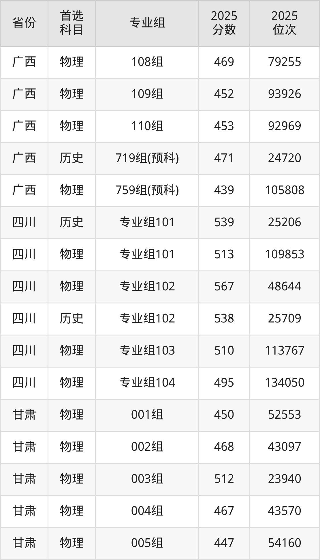 因为大部分地区目前只公布了院校(专业组)分数线,为了方便2026年考生参考,本文就整理出丽水学院在全国各省不同科类的最低分: