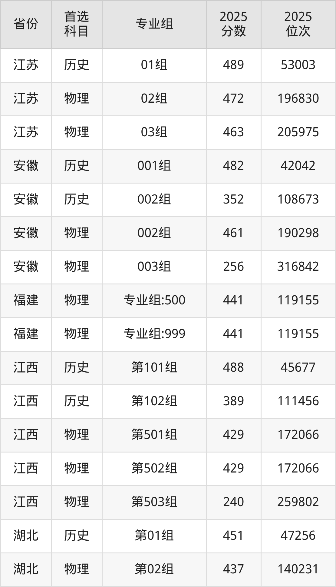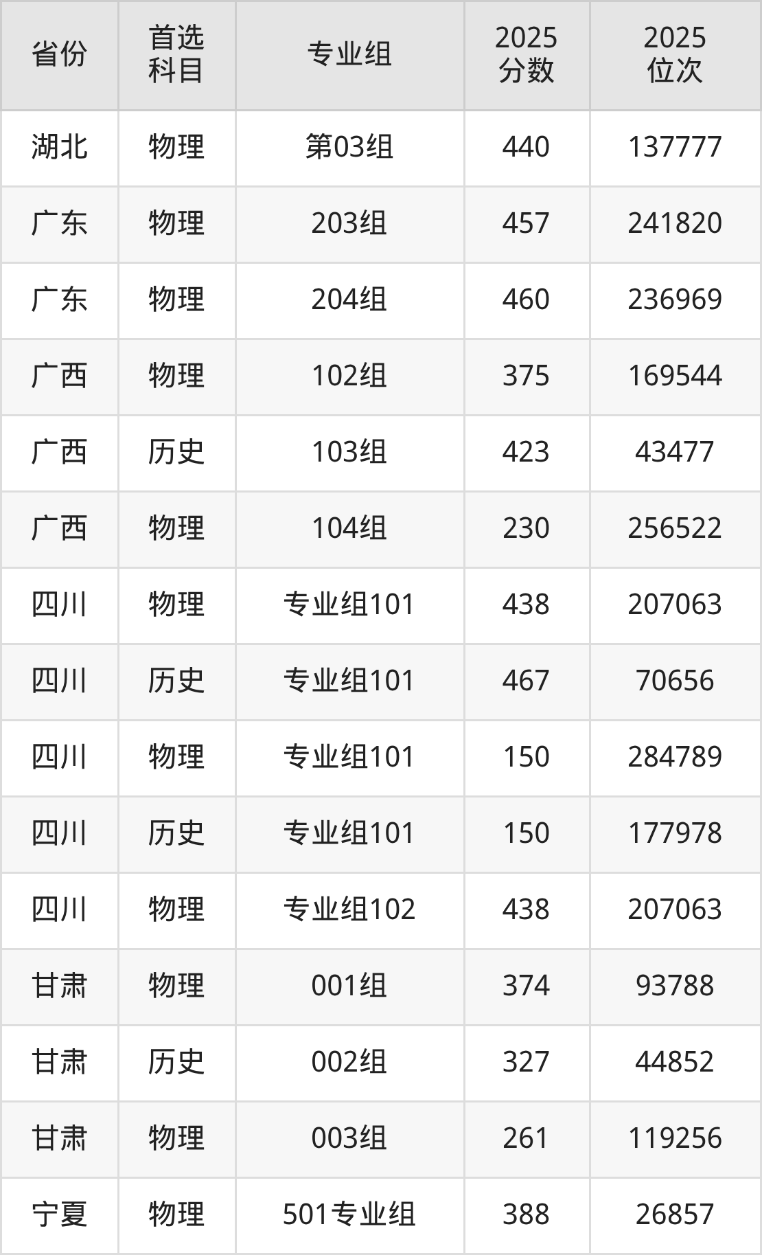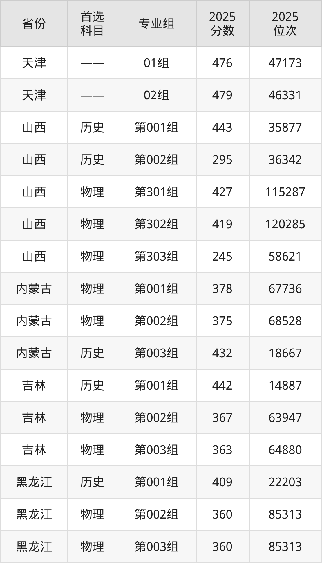 因为大部分地区目前只公布了院校(专业组)分数线,为了方便2026年考生参考,本文就整理出沈阳城市建设学院在全国各省不同科类的最低分: