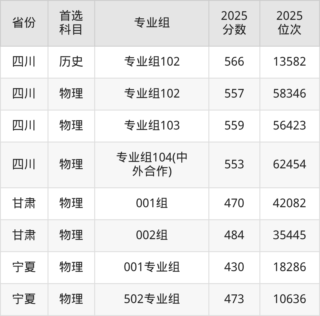 因为大部分地区目前只公布了院校(专业组)分数线,为了方便2026年考生参考,本文就整理出重庆交通大学在全国各省不同科类的最低分: