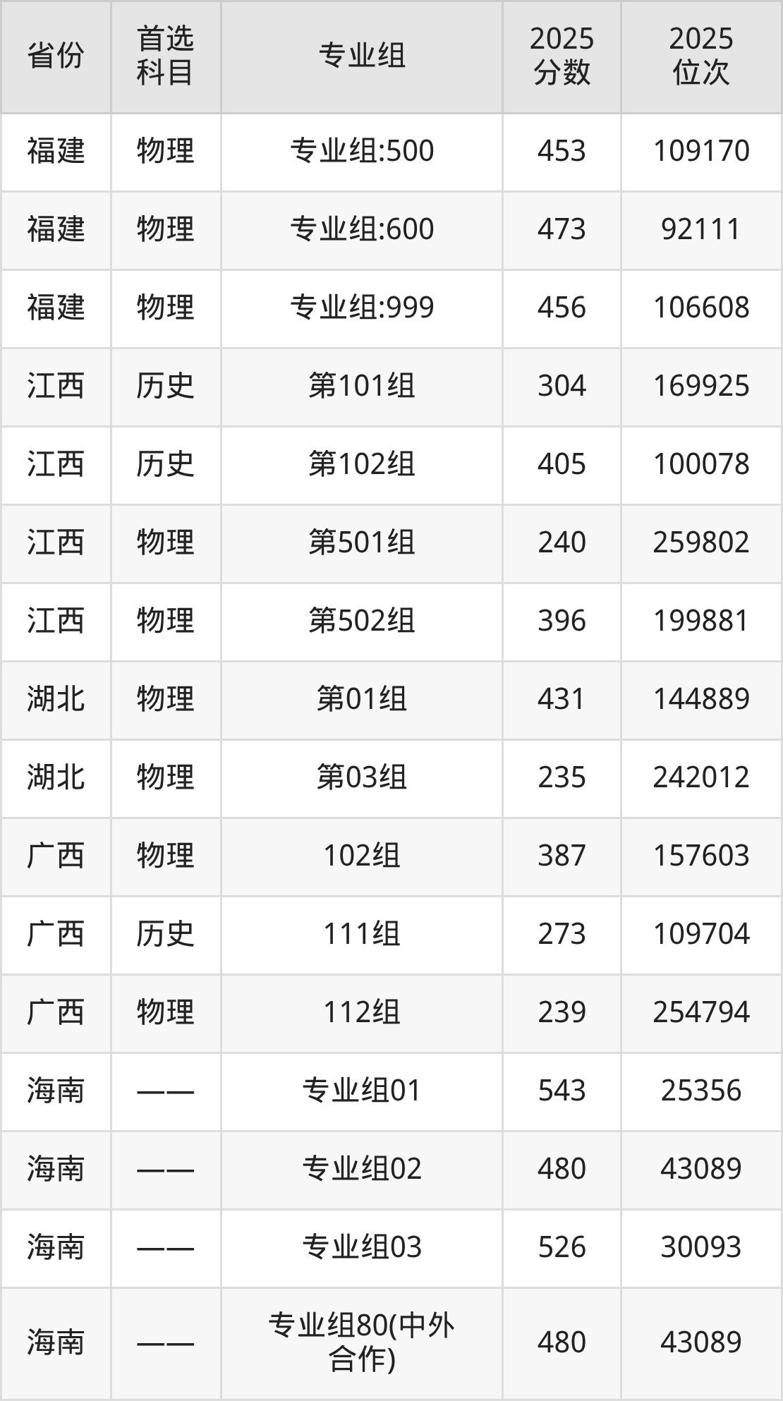 因为大部分地区目前只公布了院校(专业组)分数线,为了方便2026年考生参考,本文就整理出青岛黄海学院在全国各省不同科类的最低分: