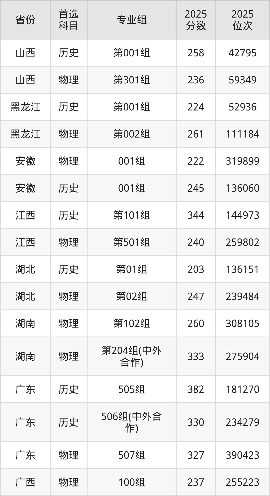 因为大部分地区目前只公布了院校(专业组)分数线,为了方便2026年考生参考,本文就整理出江西工商职业技术学院在全国各省不同科类的最低分: