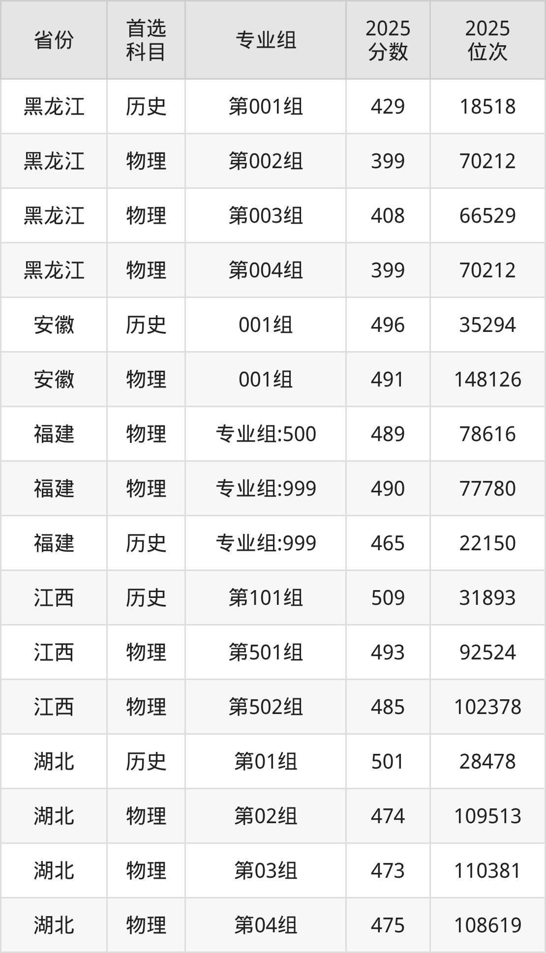 因为大部分地区目前只公布了院校(专业组)分数线,为了方便2026年考生参考,本文就整理出重庆工程学院在全国各省不同科类的最低分: