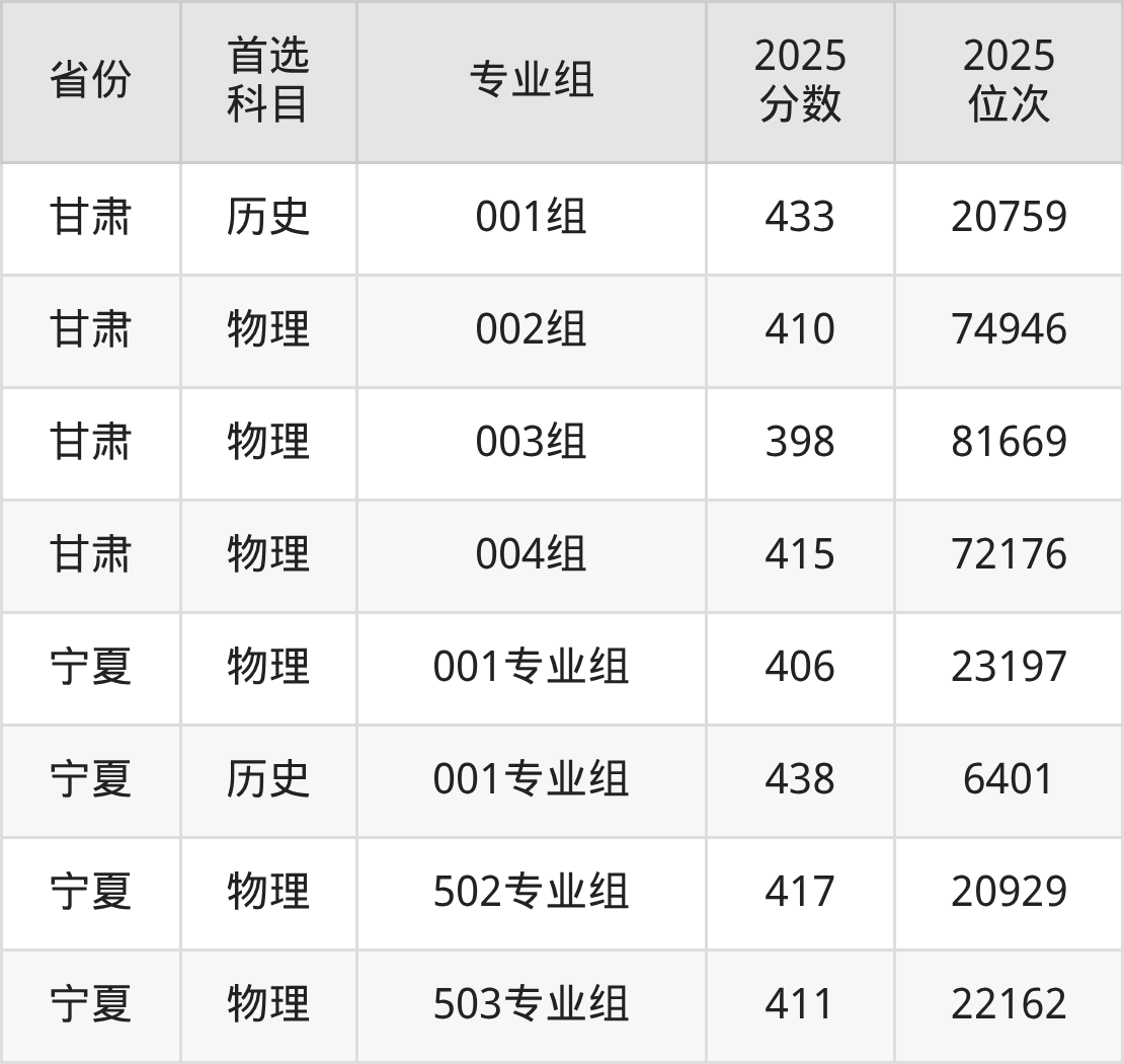 5.工商管理类:历史类445分、33174位,物理类425分、103219位