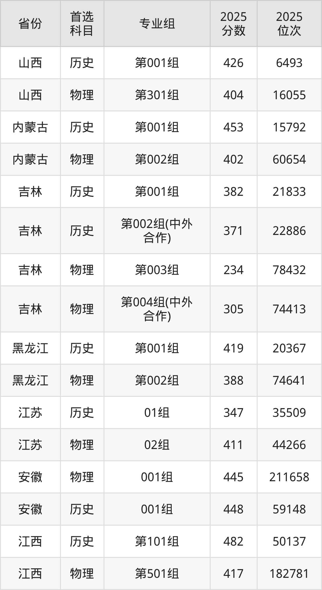 因为大部分地区目前只公布了院校(专业组)分数线,为了方便2026年考生参考,本文就整理出长春医学高等专科学校在全国各省不同科类的最低分: