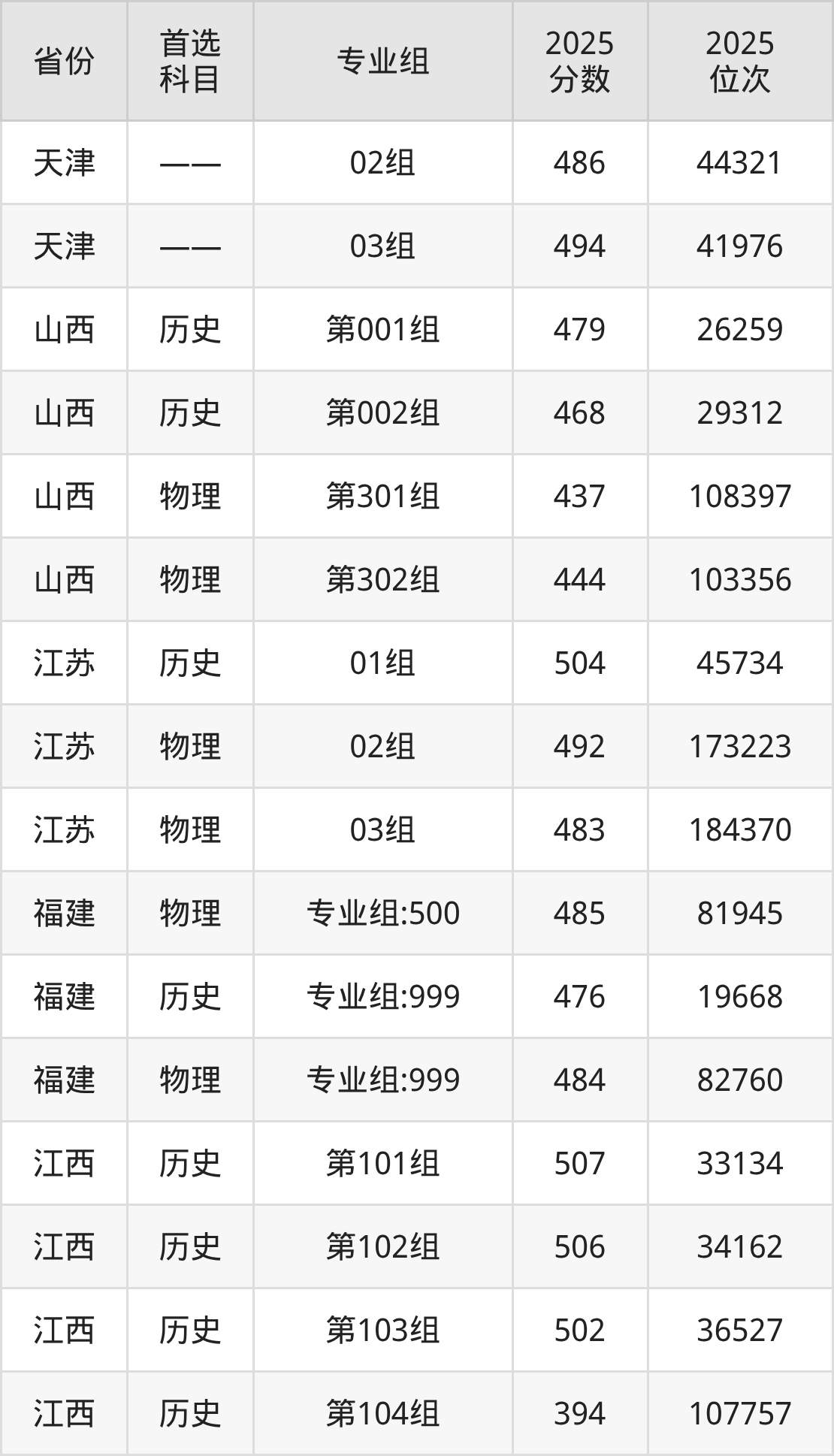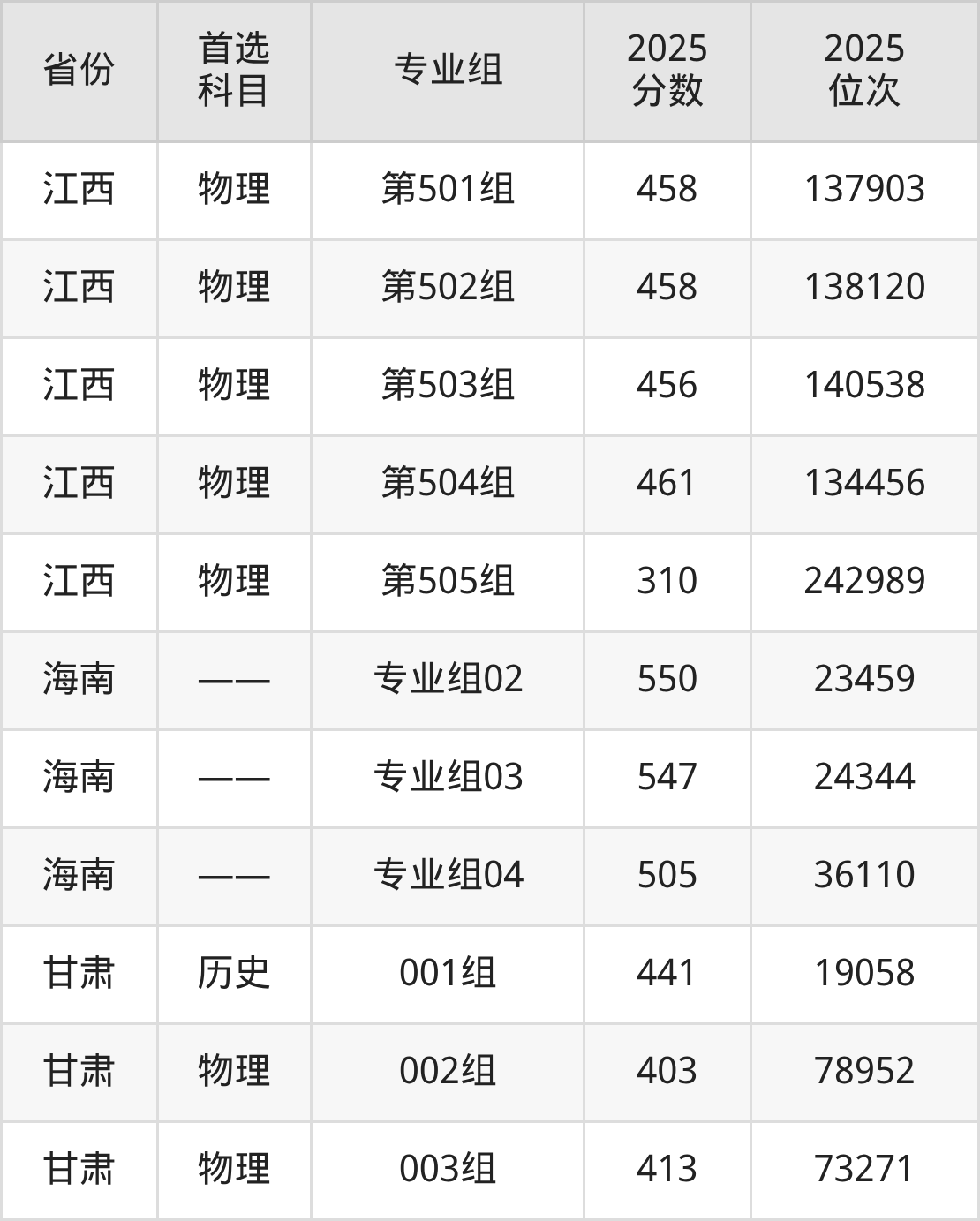 因为大部分地区目前只公布了院校(专业组)分数线,为了方便2026年考生参考,本文就整理出南昌大学共青学院在全国各省不同科类的最低分: