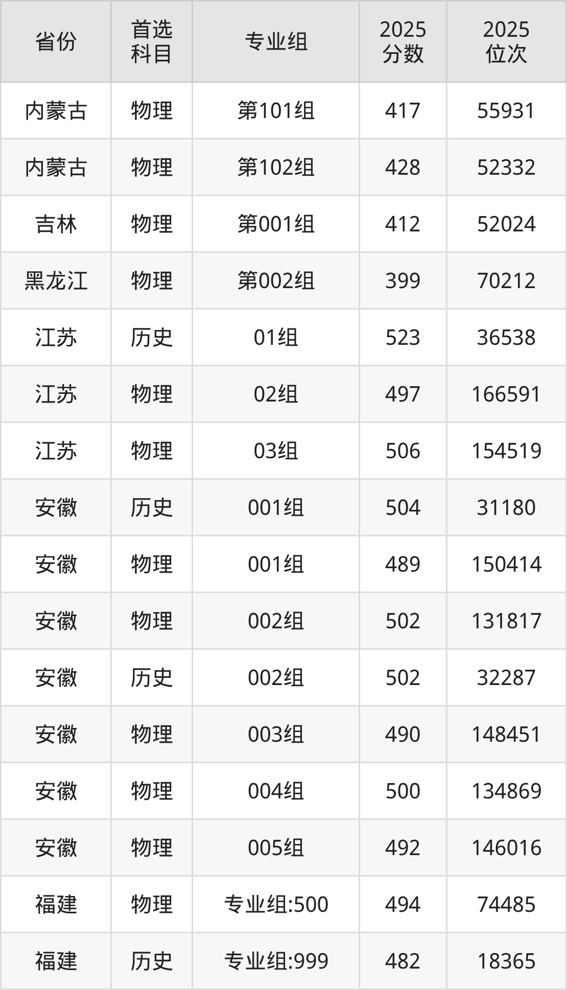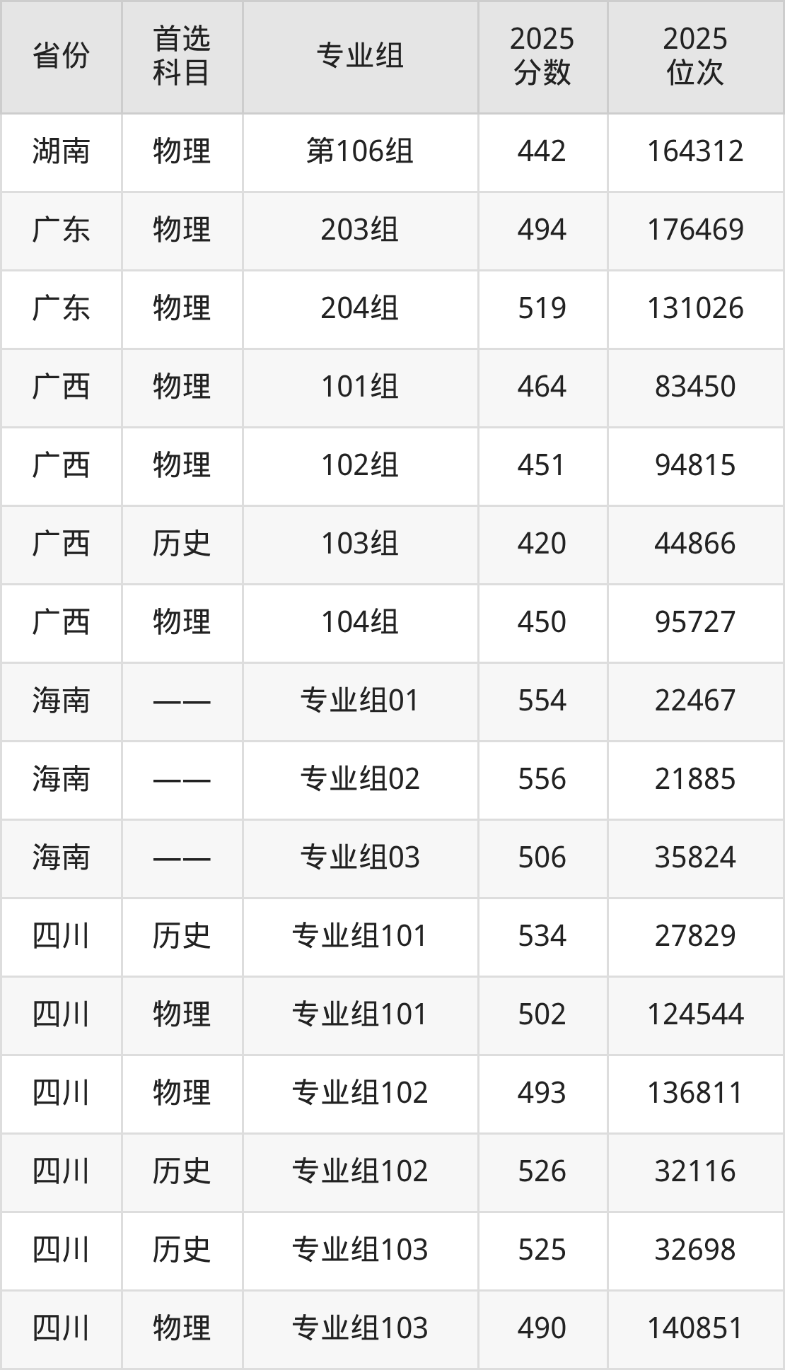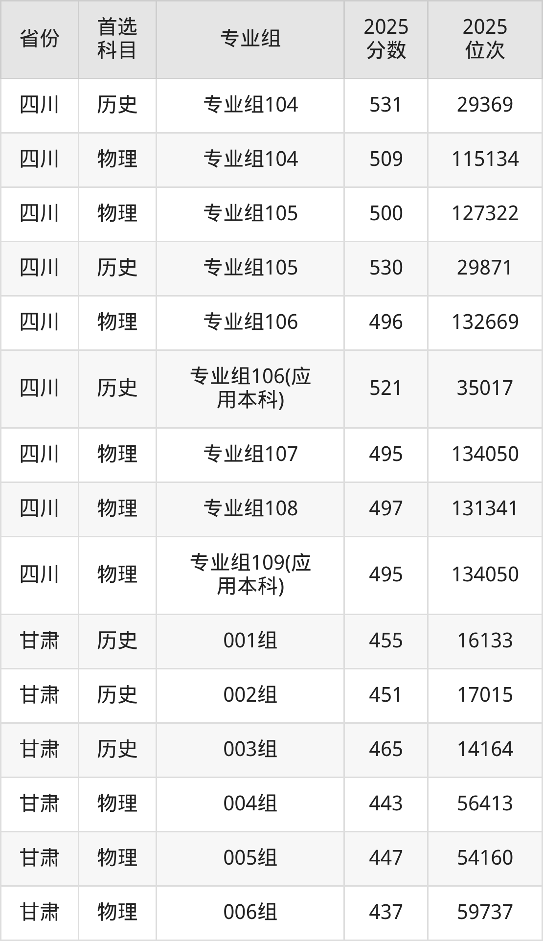 因为大部分地区目前只公布了院校(专业组)分数线,为了方便2026年考生参考,本文就整理出西昌学院在全国各省不同科类的最低分: